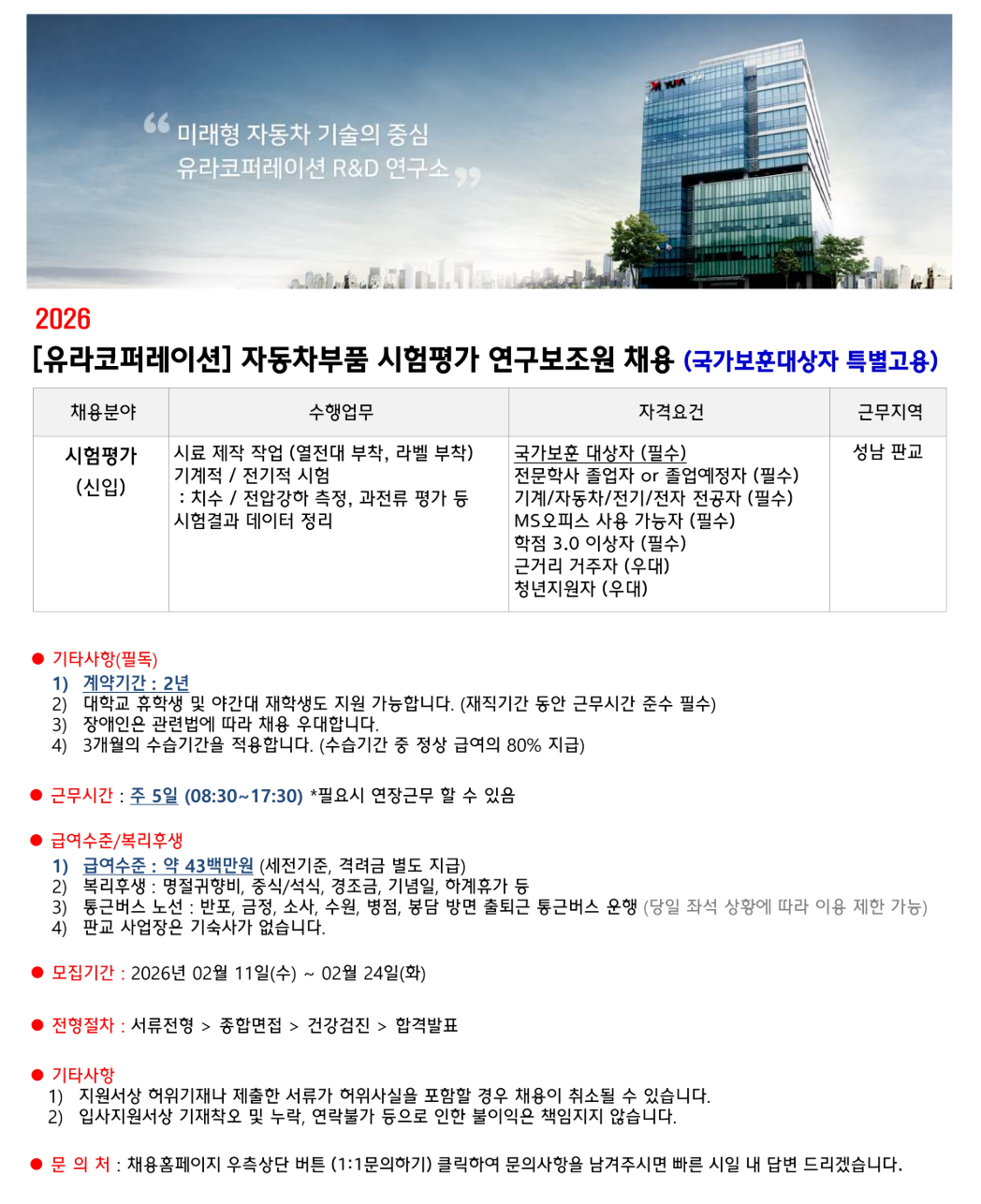 [À¯¶óÄÚÆÛ·¹À̼Ç] ÀÚµ¿Â÷ºÎǰ ½ÃÇèÆò°¡ ¿¬±¸º¸Á¶¿ø ä¿ë (±¹°¡º¸ÈÆ´ë»óÀÚ Æ¯º°°í¿ë)