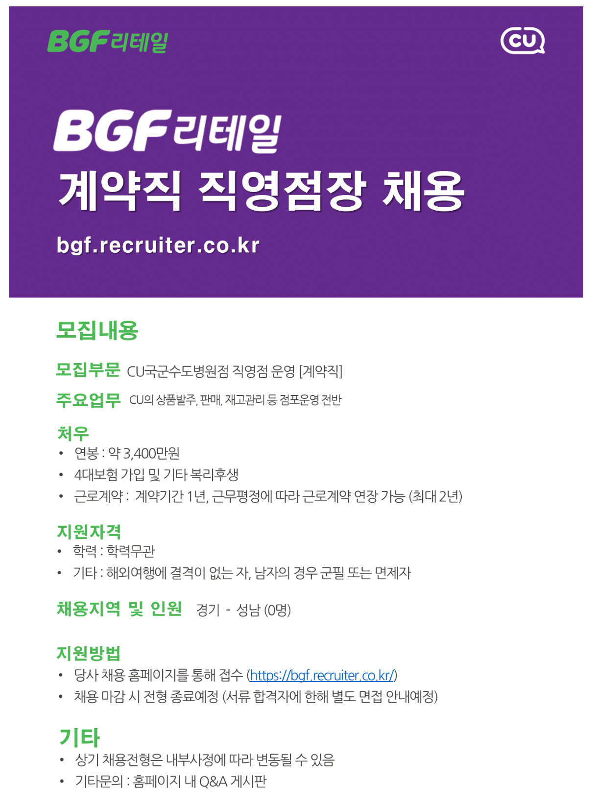 [BGF¸®Å×ÀÏ] 2026³â °è¾àÁ÷ Á÷¿µÁ¡Àå ä¿ë - ±¹±º¼öµµº´¿øÁ¡