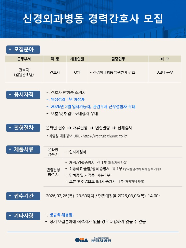[ºÐ´çÂ÷º´¿ø] ½Å°æ¿Ü°úº´µ¿ °æ·Â°£È£»ç ¸ðÁý