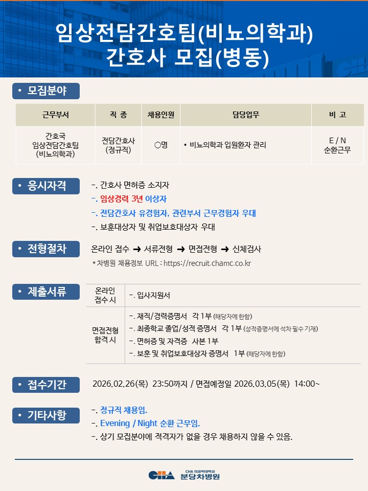 [ºÐ´çÂ÷º´¿ø] ÀÓ»óÀü´ã°£È£ÆÀ(ºñ´¢ÀÇÇаú) °£È£»ç ¸ðÁý(º´µ¿)