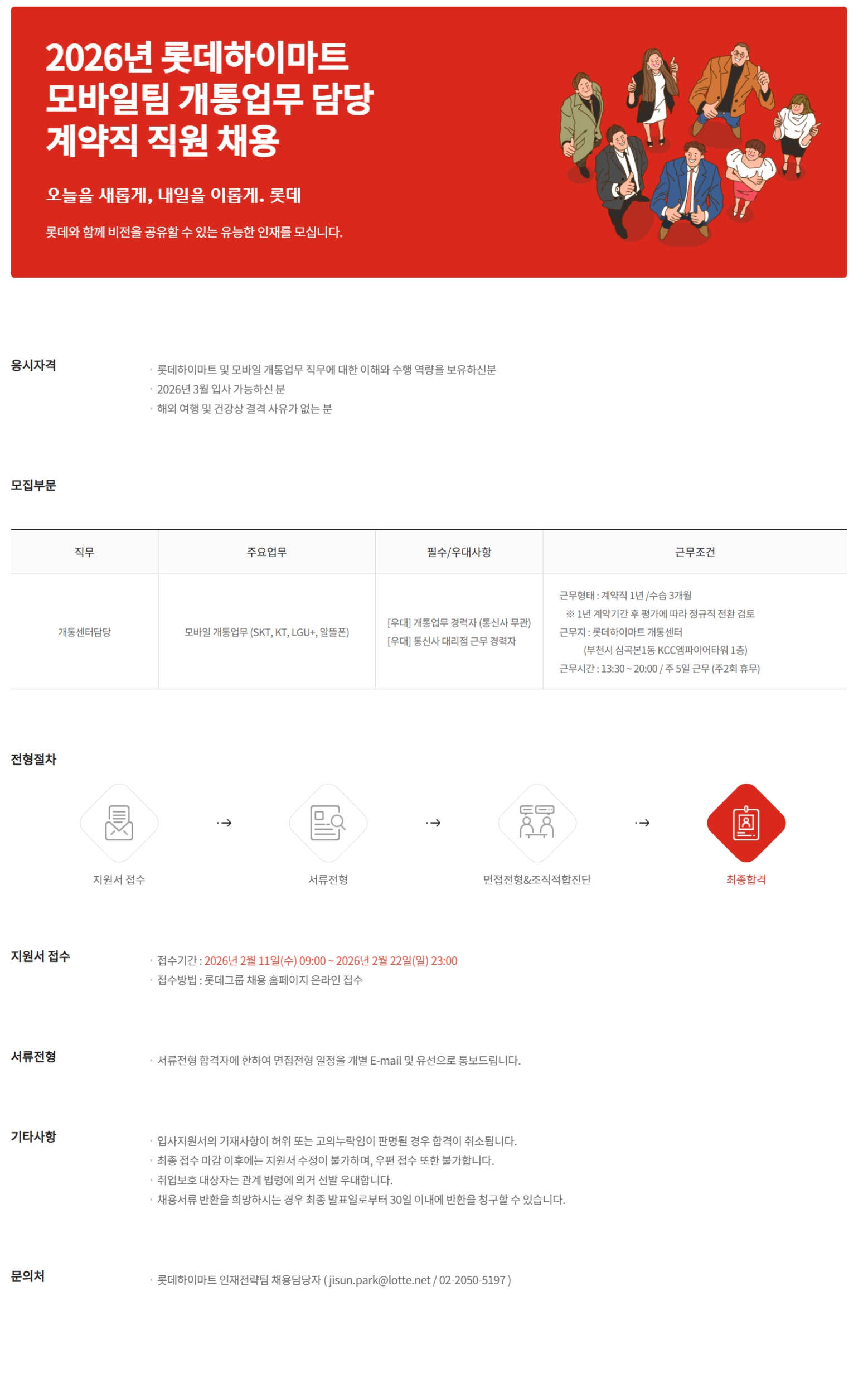 26³â 2¿ù ·Ôµ¥ÇÏÀ̸¶Æ® ¸ð¹ÙÀÏÆÀ °³Åë¾÷¹«´ã´ç °è¾àÁ÷ ä¿ë