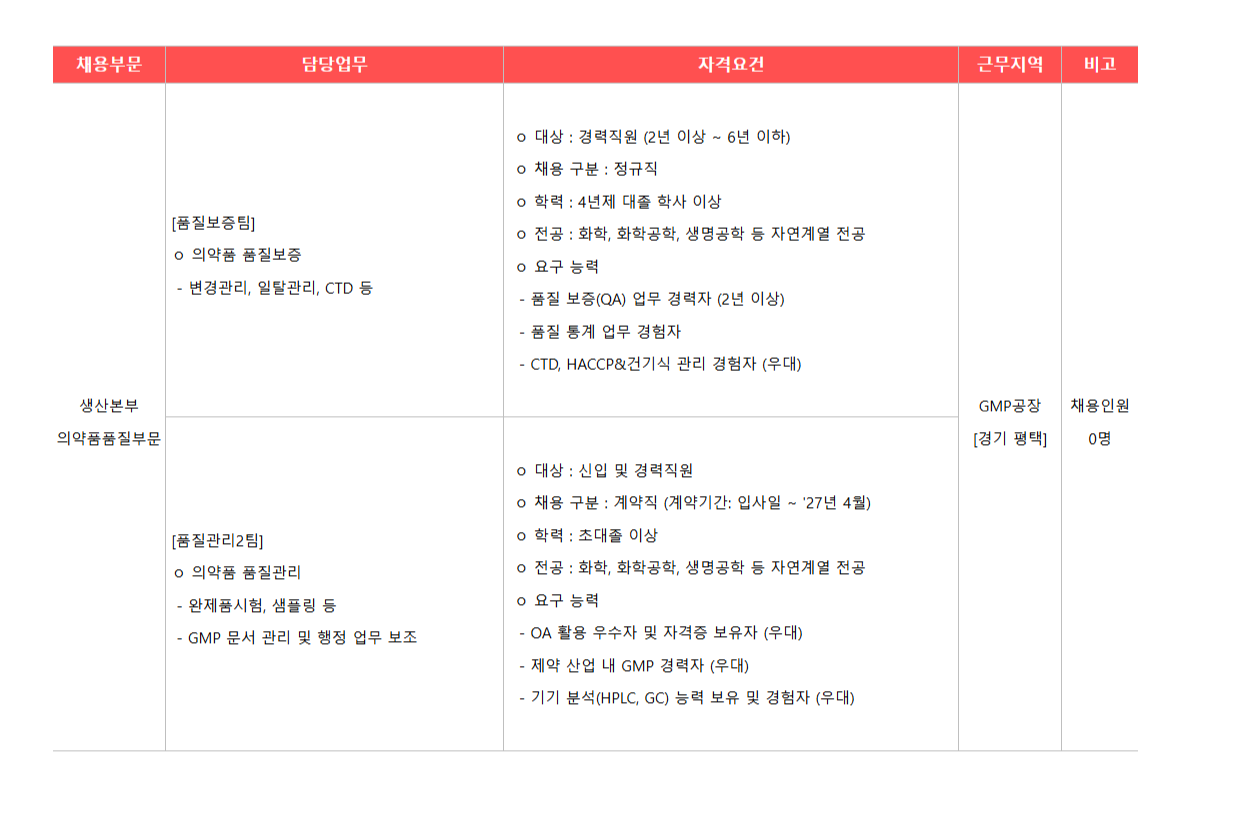 [±¤µ¿Á¦¾à] ÀǾàǰǰÁúºÎ¹® ǰÁú°ü¸®ÆÀ, ǰÁúº¸ÁõÆÀ ½ÅÀÔ ¹× °æ·ÂÁ÷¿ø ¸ðÁý