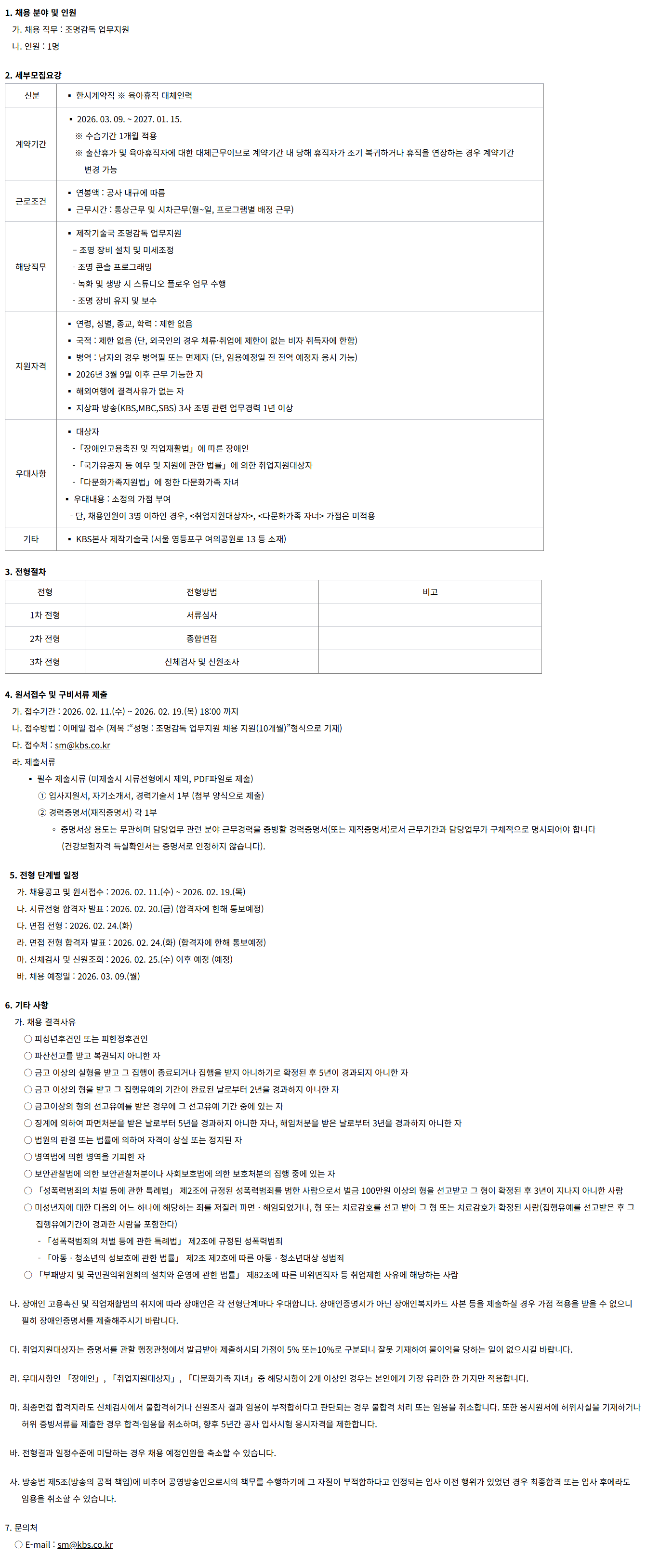°¡. ä¿ë°ø°í ¹× ¿ø¼Á¢¼ö : 2026. 02. 11.(¼ö) ~ 2026. 02. 19.(¸ñ)