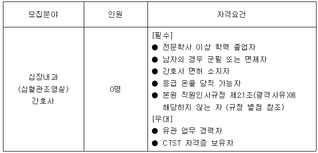°æÈñÀÇ·á¿ø ½ÅÀÔÁ÷¿ø [½ÉÀå³»°ú(½ÉÇ÷°üÁ¶¿µ½Ç) °£È£»ç] ä¿ë°ø°í
