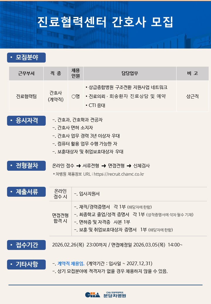[ºÐ´çÂ÷º´¿ø] Áø·áÇù·Â¼¾ÅÍ °£È£»ç ¸ðÁý