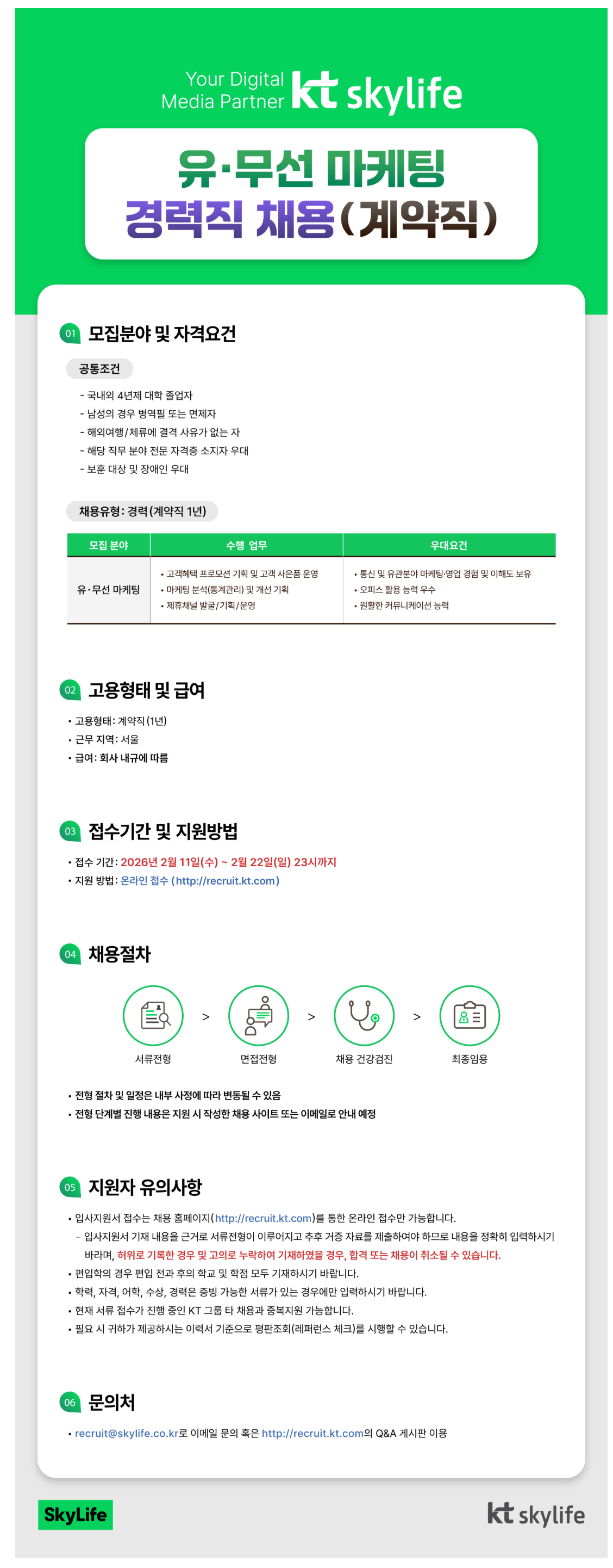 [kt skylife] À¯¹«¼± ¸¶ÄÉÆÃ °æ·ÂÁ÷ ä¿ë(°è¾àÁ÷)