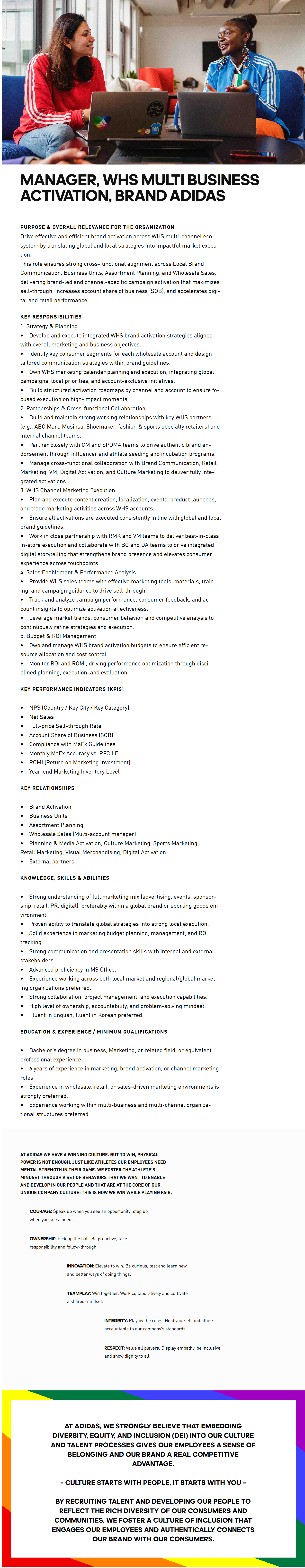 Manager, WHS Multi Business Activation, Brand adidas