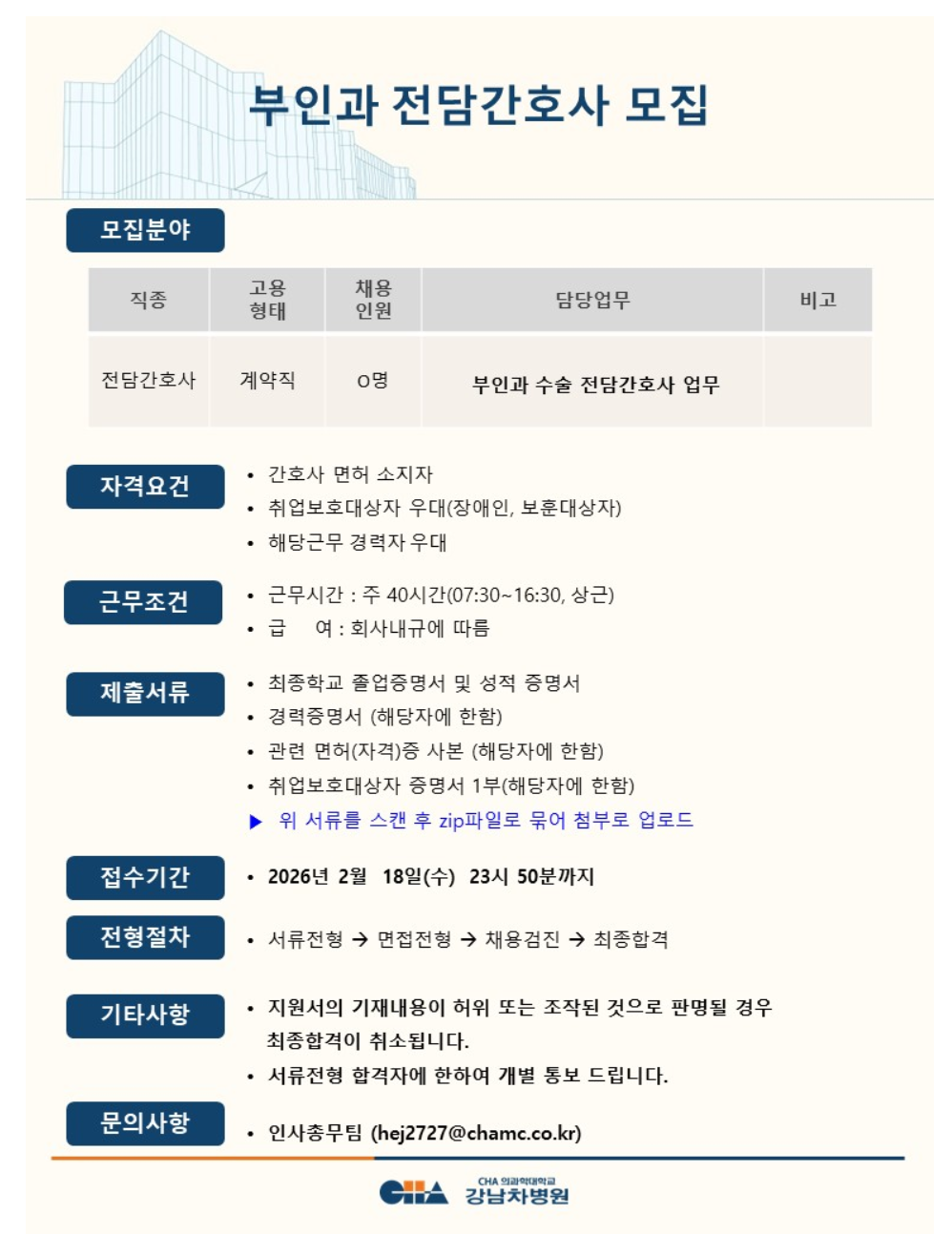 [°­³²Â÷º´¿ø] ºÎÀΰú Àü´ã°£È£»ç ¸ðÁý