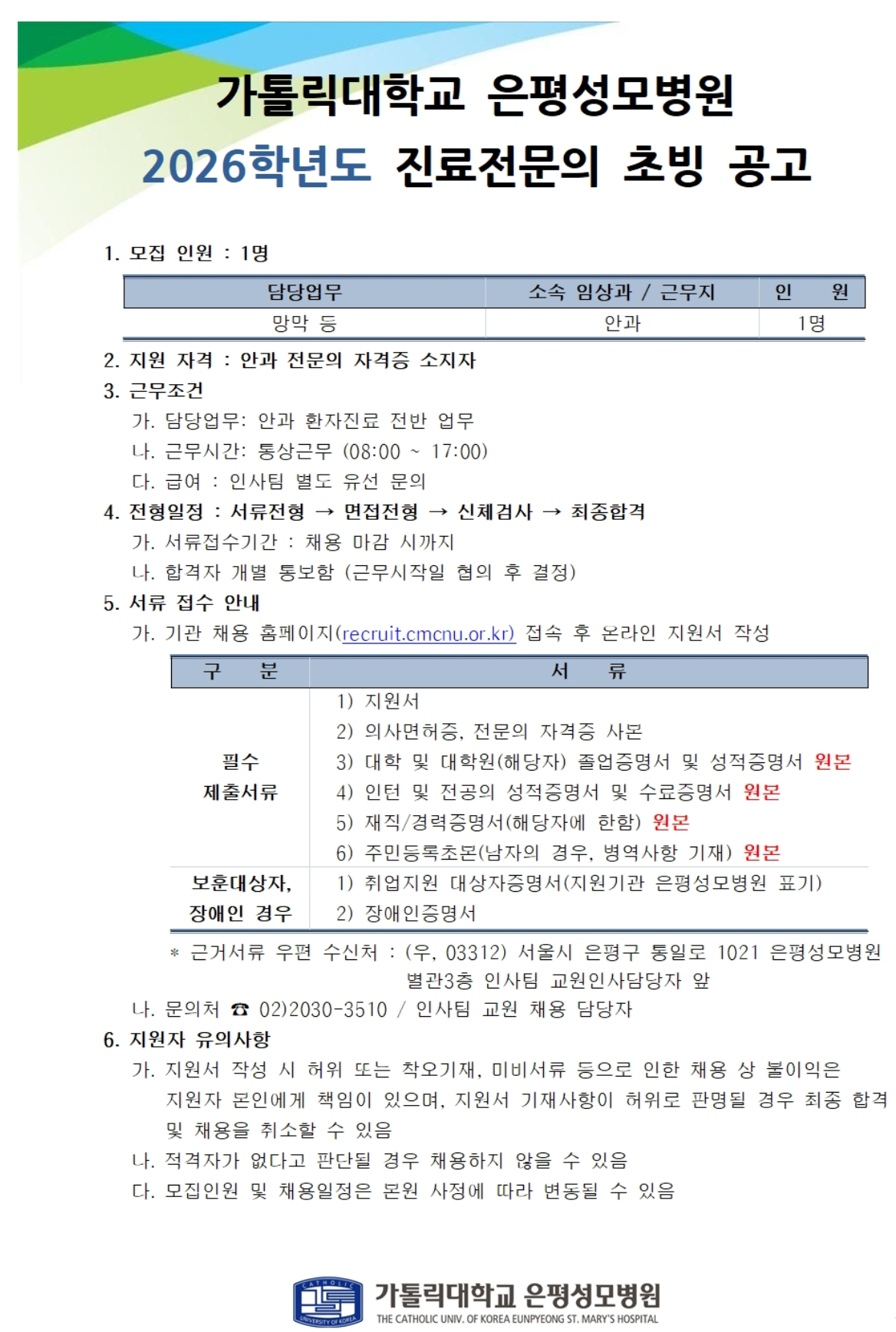 [ÀºÆò¼º¸ð] 2026Çг⵵ ¾È°ú Áø·áÀü¹®ÀÇ Ãʺù °ø°í