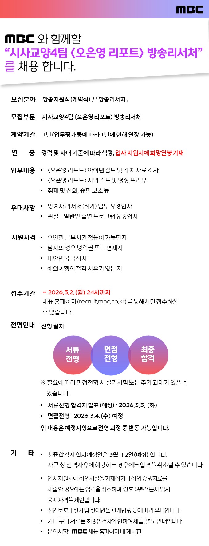 MBC ½Ã»ç±³¾ç4ÆÀ ¹æ¼ÛÁö¿øÁ÷ ´ã´ç ¸ðÁý