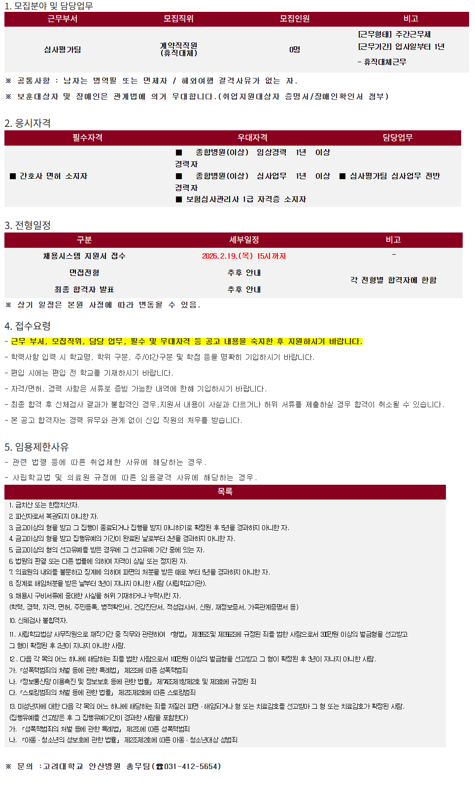 ¡á Á¾ÇÕº´¿ø(ÀÌ»ó) ½É»ç¾÷¹« 1³â ÀÌ»ó °æ·ÂÀÚ