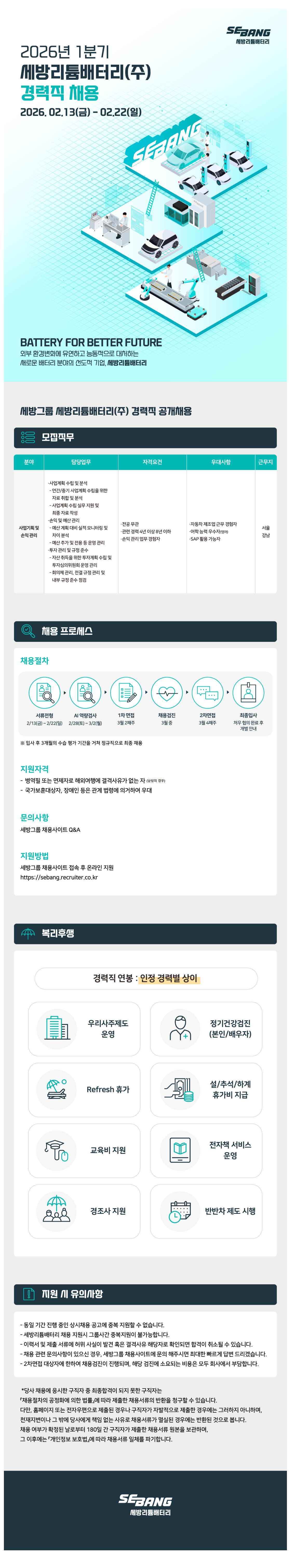 2026³â 1ºÐ±â ¼¼¹æ¸®Æ¬¹èÅ͸®(ÁÖ) °æ·ÂÁ÷ ä¿ë