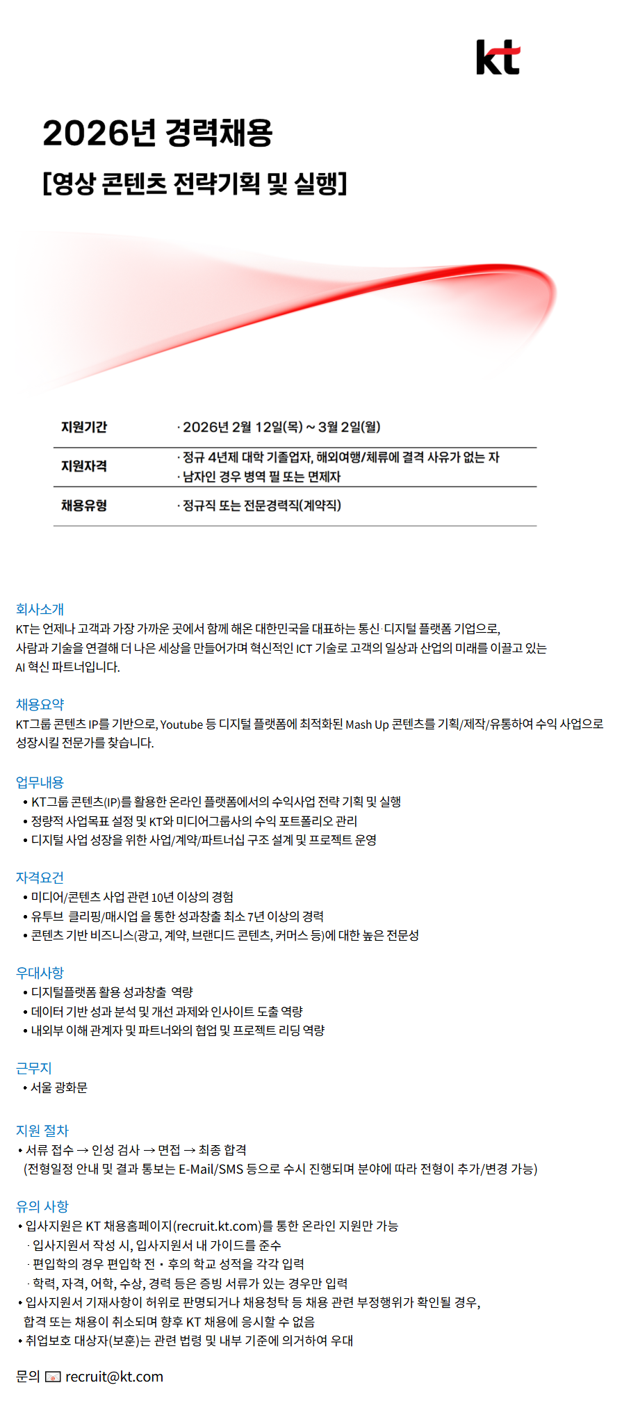 [KT] 2026³â °æ·Âä¿ë(¿µ»ó ÄÜÅÙÃ÷ Àü·«±âȹ ¹× ½ÇÇà)