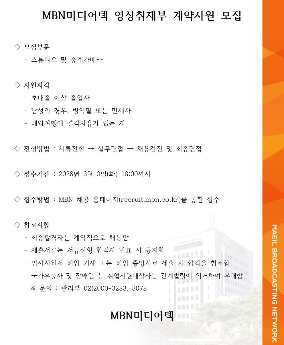 MBN¹Ìµð¾îÅØ ¿µ»óÃëÀçºÎ °è¾à»ç¿ø ¸ðÁý