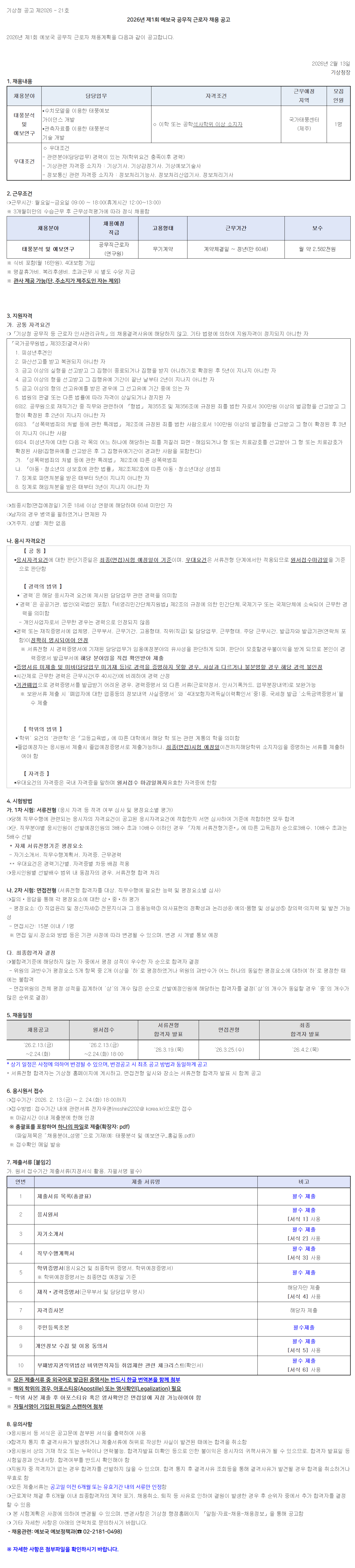 2026³â Á¦1ȸ ¿¹º¸±¹ °ø¹«Á÷ ±Ù·ÎÀÚ Ã¤¿ë°èȹÀ» ´ÙÀ½°ú °°ÀÌ °ø°íÇÕ´Ï´Ù.
