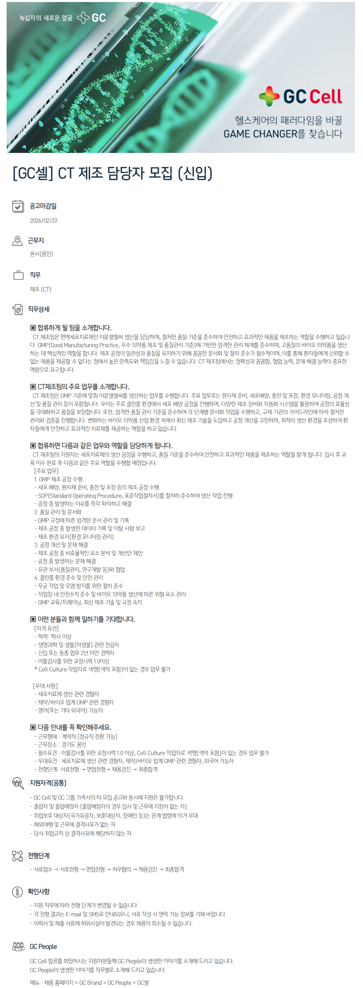 - ¿ì´ë¿ä°Ç : ¼¼Æ÷Ä¡·áÁ¦ »ý»ê °ü·Ã °æÇèÀÚ, Á¦¾à/¹ÙÀÌ¿À ¾÷°è GMP °ü·Ã °æÇèÀÚ, ¿Ü±¹¾î °¡´ÉÀÚ