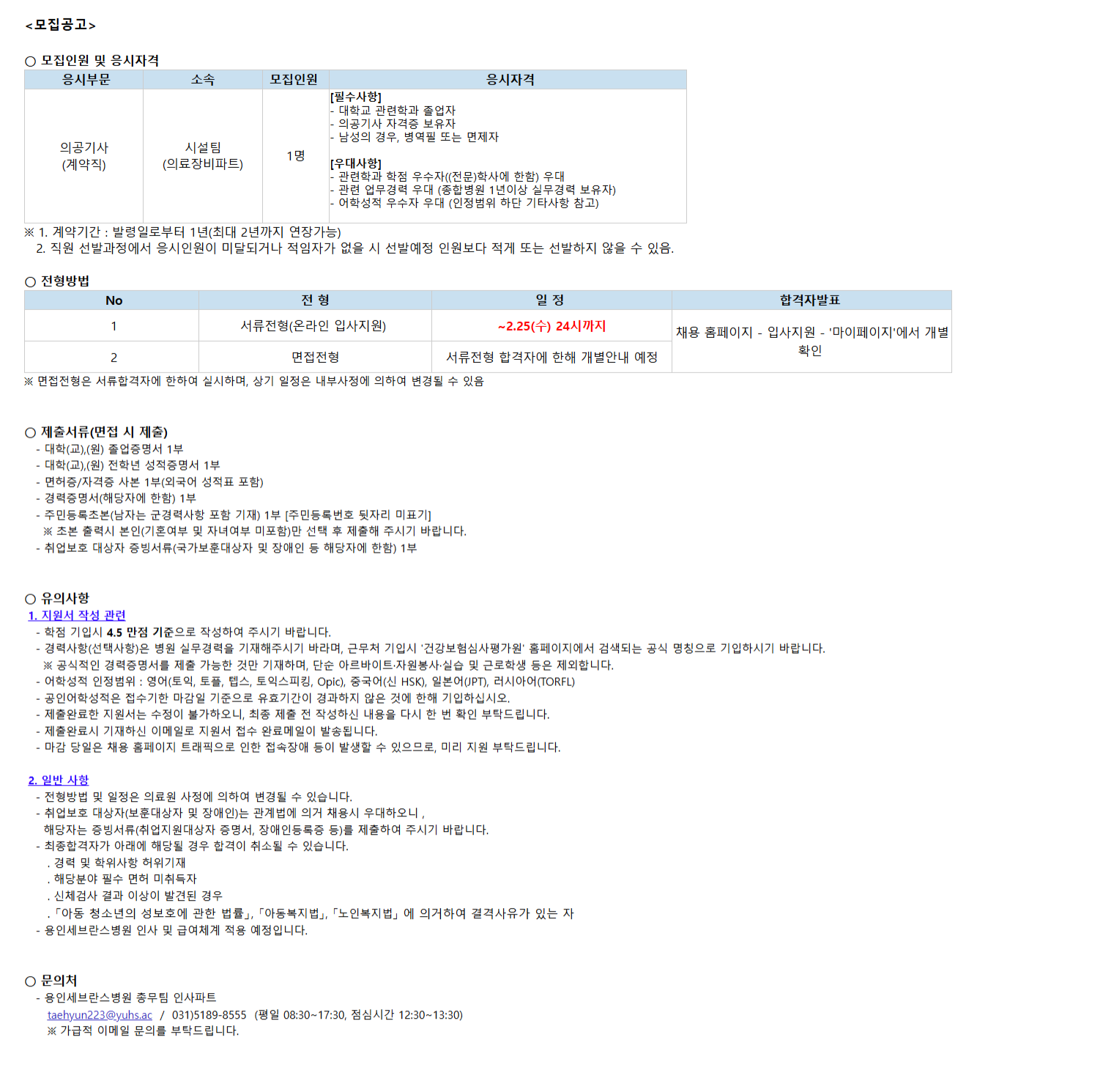 [¿ëÀÎ] ½Ã¼³ÆÀ(ÀÇ·áÀåºñÆÄÆ®) Àǰø±â»ç(°è¾àÁ÷) ½Å±Ôä¿ë 26.2