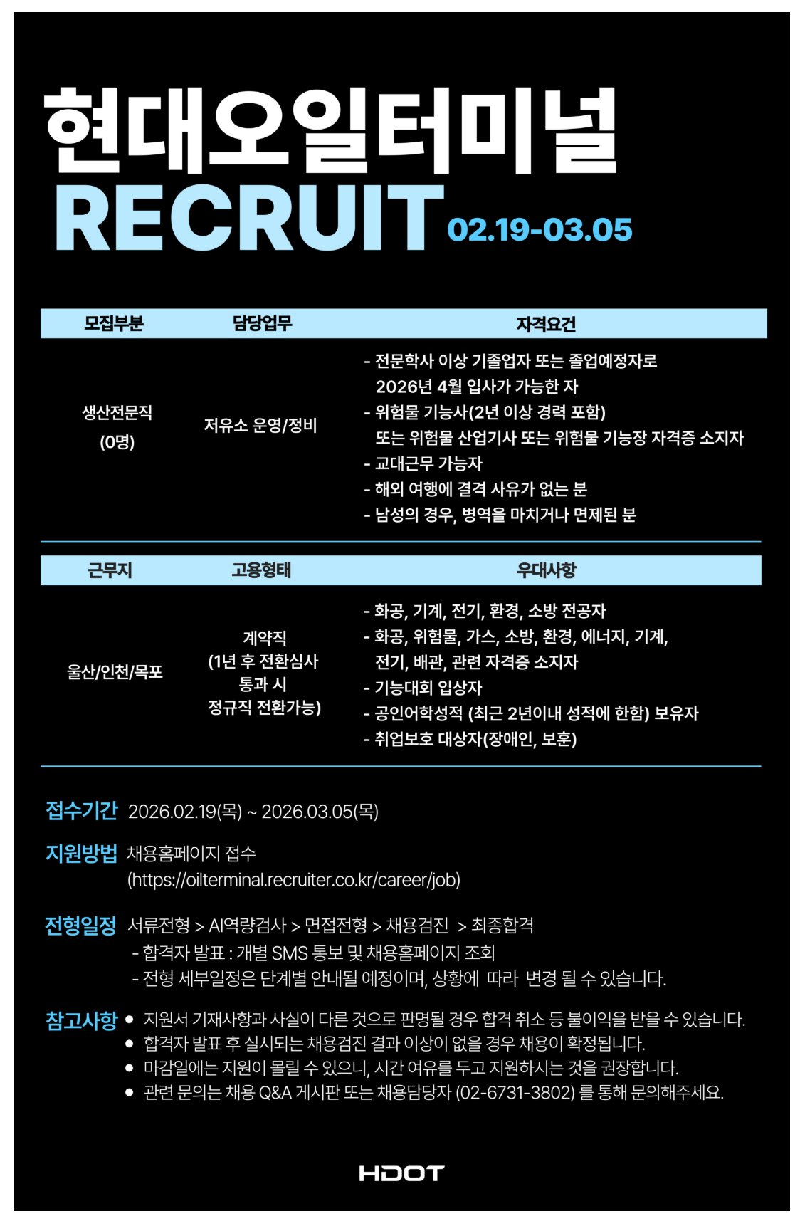 2026³â »ó¹Ý±â Çö´ë¿ÀÀÏÅ͹̳Π»ý»êÀü¹®Á÷ ½ÅÀÔ Ã¤¿ë
