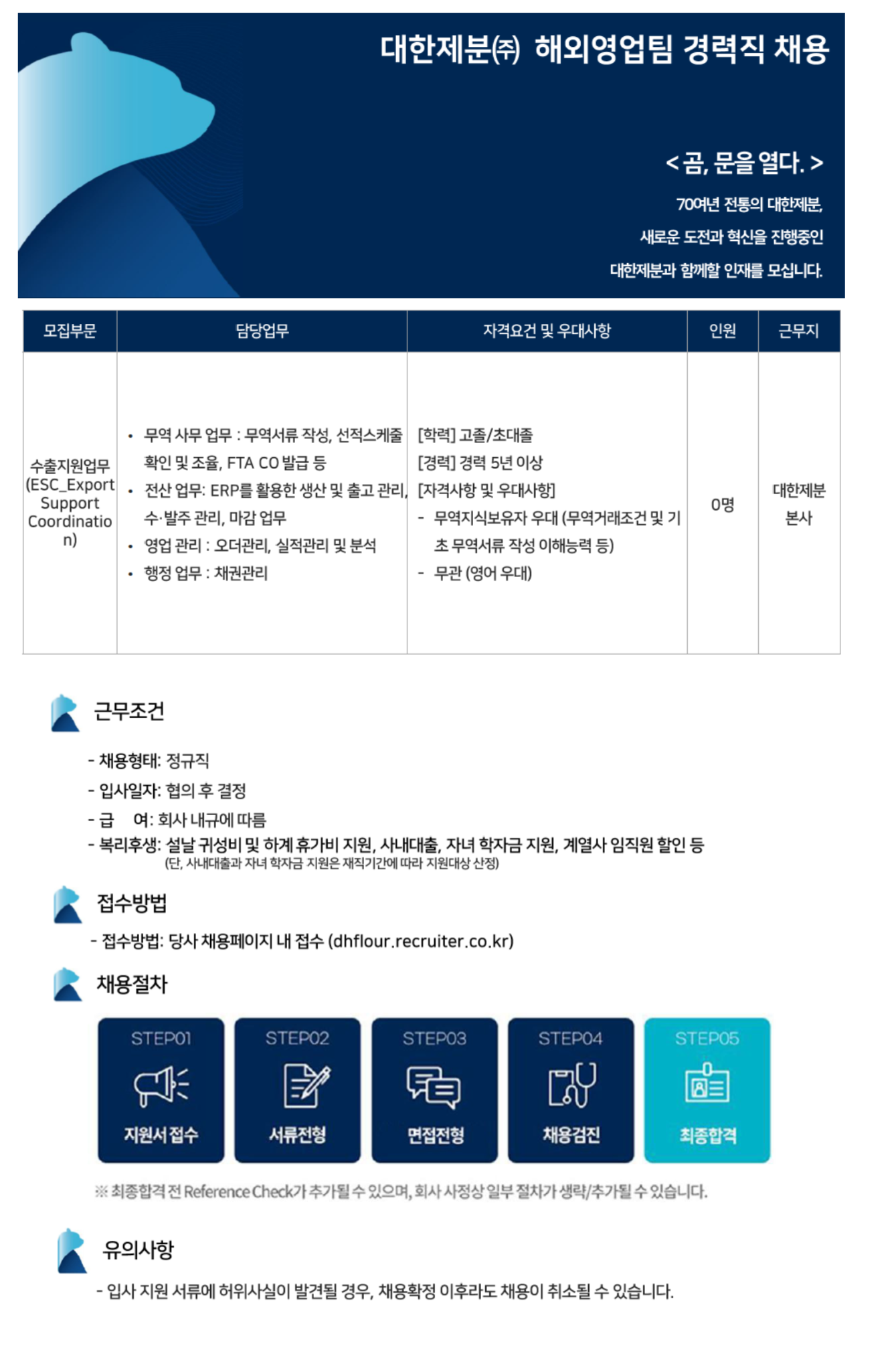 ´ëÇÑÁ¦ºÐ(ÁÖ) ÇØ¿Ü¿µ¾÷ÆÀ °æ·ÂÁ÷ ä¿ë