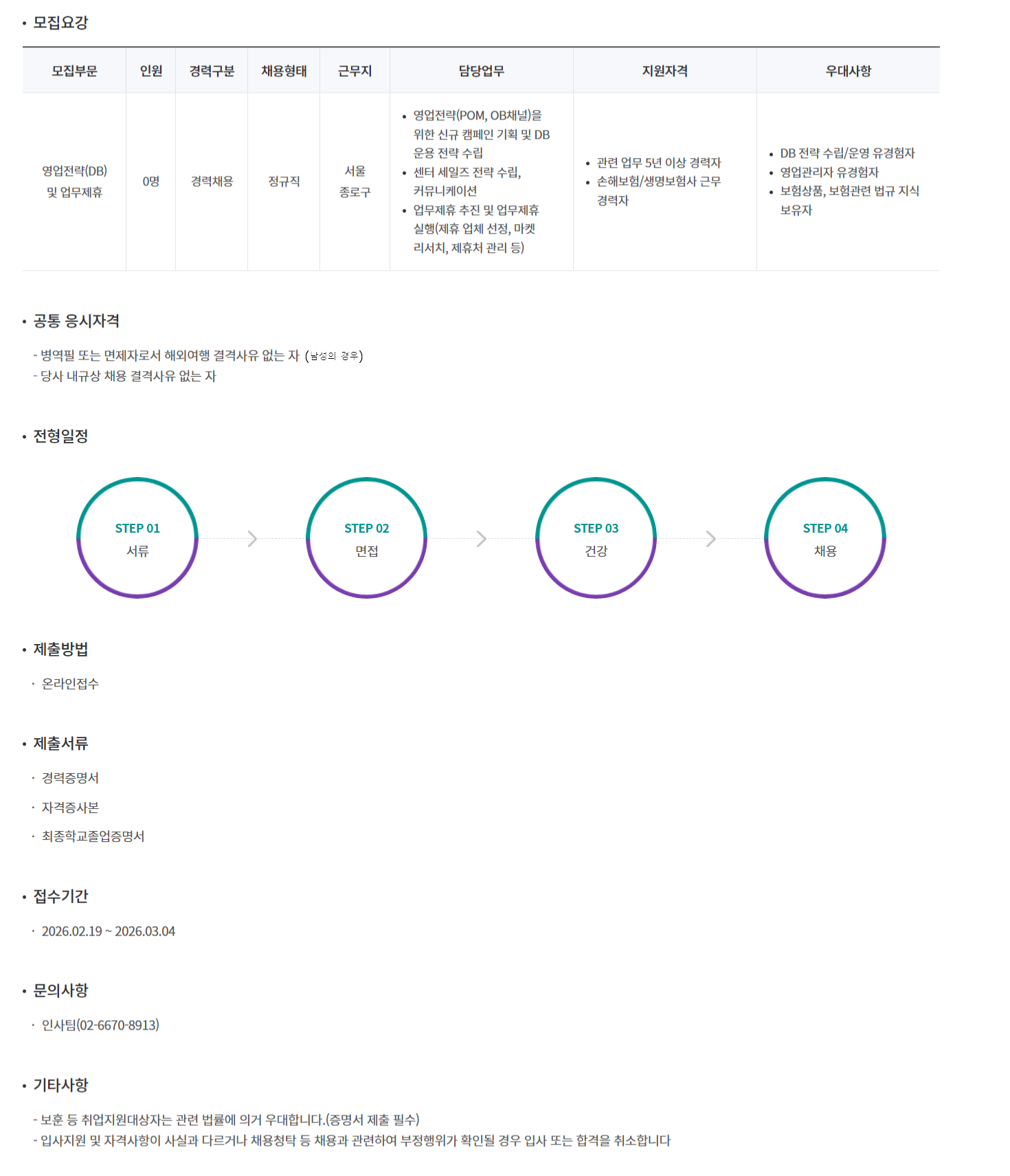 ¼ÕÇØº¸Çè/»ý¸íº¸Çè»ç ±Ù¹« °æ·ÂÀÚ DB Àü·« ¼ö¸³/¿î¿µ À¯°æÇèÀÚ