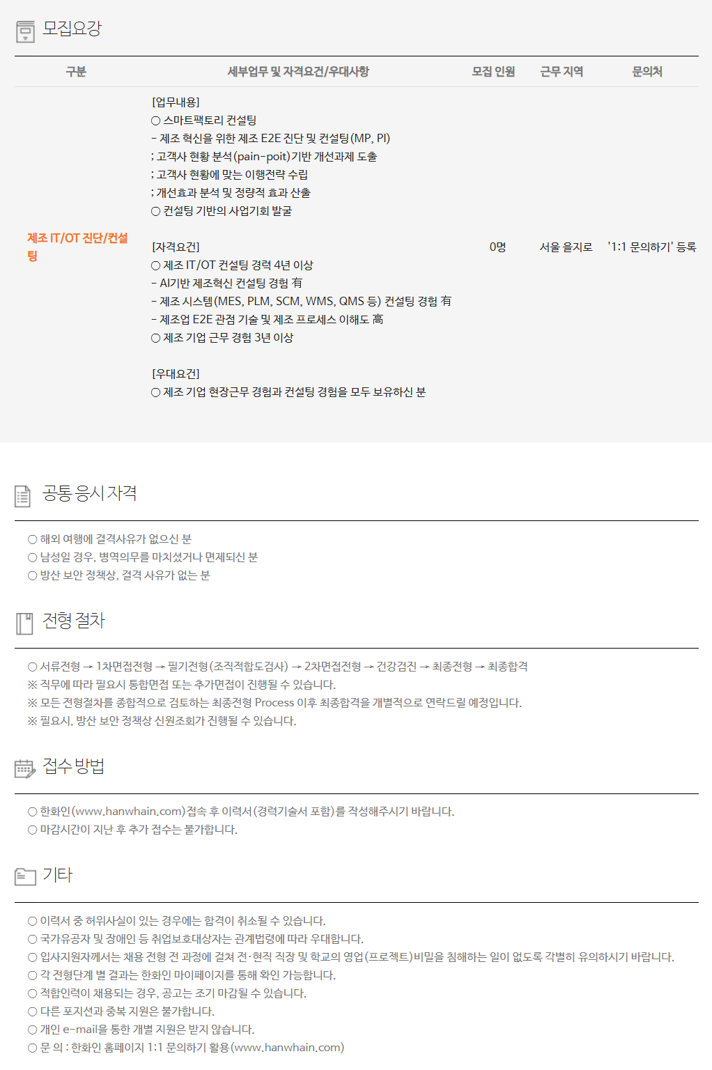 ¡Û Á¦Á¶ ±â¾÷ ÇöÀå±Ù¹« °æÇè°ú ÄÁ¼³ÆÃ °æÇèÀ» ¸ðµÎ º¸À¯ÇϽŠºÐ 0¸í ¼¿ï À»Áö·Î '1:1 ¹®ÀÇÇϱâ' µî·Ï