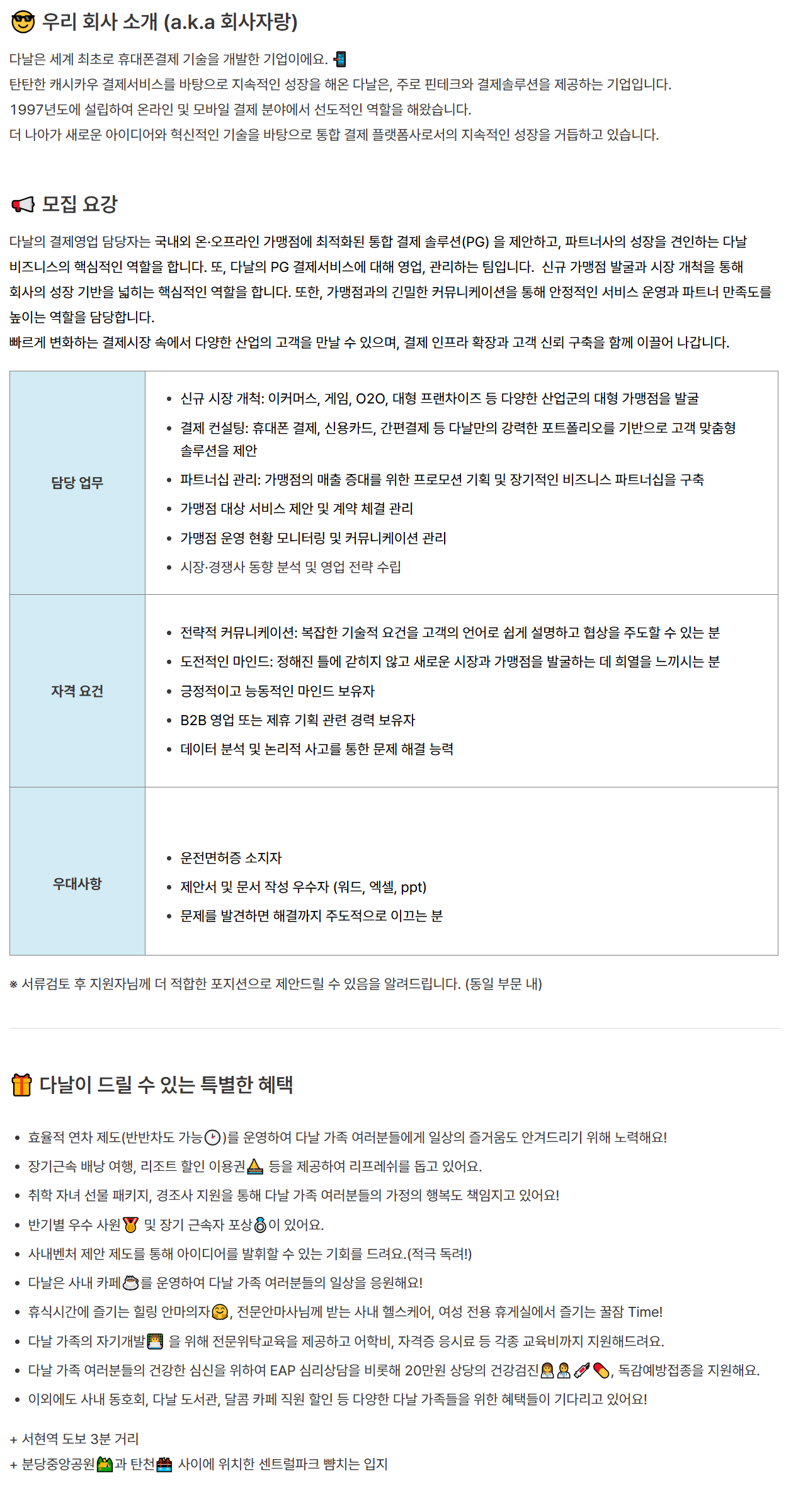 ´Ù³¯ÀÇ °áÁ¦¿µ¾÷ ´ã´çÀÚ´Â ±¹³»¿Ü ¿Â¡¤¿ÀÇÁ¶óÀÎ °¡¸ÍÁ¡¿¡ ÃÖÀûÈµÈ ÅëÇÕ °áÁ¦ ¼Ö·ç¼Ç(PG) À» Á¦¾ÈÇϰí, ÆÄÆ®³Ê»çÀÇ ¼ºÀåÀ» °ßÀÎÇÏ´Â ´Ù³¯ ºñÁî´Ï½ºÀÇ ÇÙ½ÉÀûÀÎ ¿ªÇÒÀ» ÇÕ´Ï´Ù. ¶Ç, ´Ù³¯ÀÇ PG °áÁ¦¼ºñ½º¿¡ ´ëÇØ ¿µ¾÷, °ü¸®ÇÏ´Â ÆÀÀÔ´Ï´Ù. ½Å±Ô °¡¸ÍÁ¡ ¹ß±¼°ú ½ÃÀå °³Ã´À» ÅëÇØ ȸ»çÀÇ ¼ºÀå ±â¹ÝÀ» ³ÐÈ÷´Â ÇÙ½ÉÀûÀÎ ¿ªÇÒÀ» ÇÕ´Ï´Ù. ¶ÇÇÑ, °¡¸ÍÁ¡°úÀÇ ±ä¹ÐÇÑ Ä¿¹Â´ÏÄÉÀ̼ÇÀ» ÅëÇØ ¾ÈÁ¤ÀûÀÎ ¼ºñ½º ¿î¿µ°ú ÆÄÆ®³Ê ¸¸Á·µµ¸¦ ³ôÀÌ´Â ¿ªÇÒÀ» ´ã´çÇÕ´Ï´Ù.