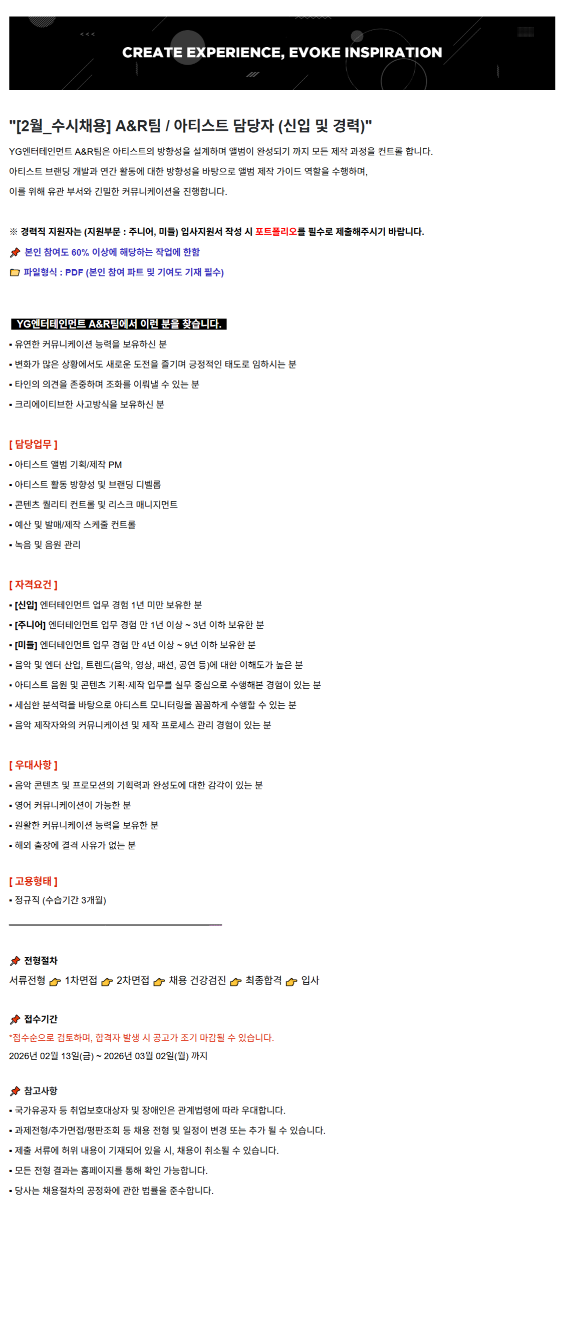 [2¿ù_¼ö½Ãä¿ë] A&RÆÀ / ¾ÆÆ¼½ºÆ® ´ã´çÀÚ (½ÅÀÔ ¹× °æ·Â)