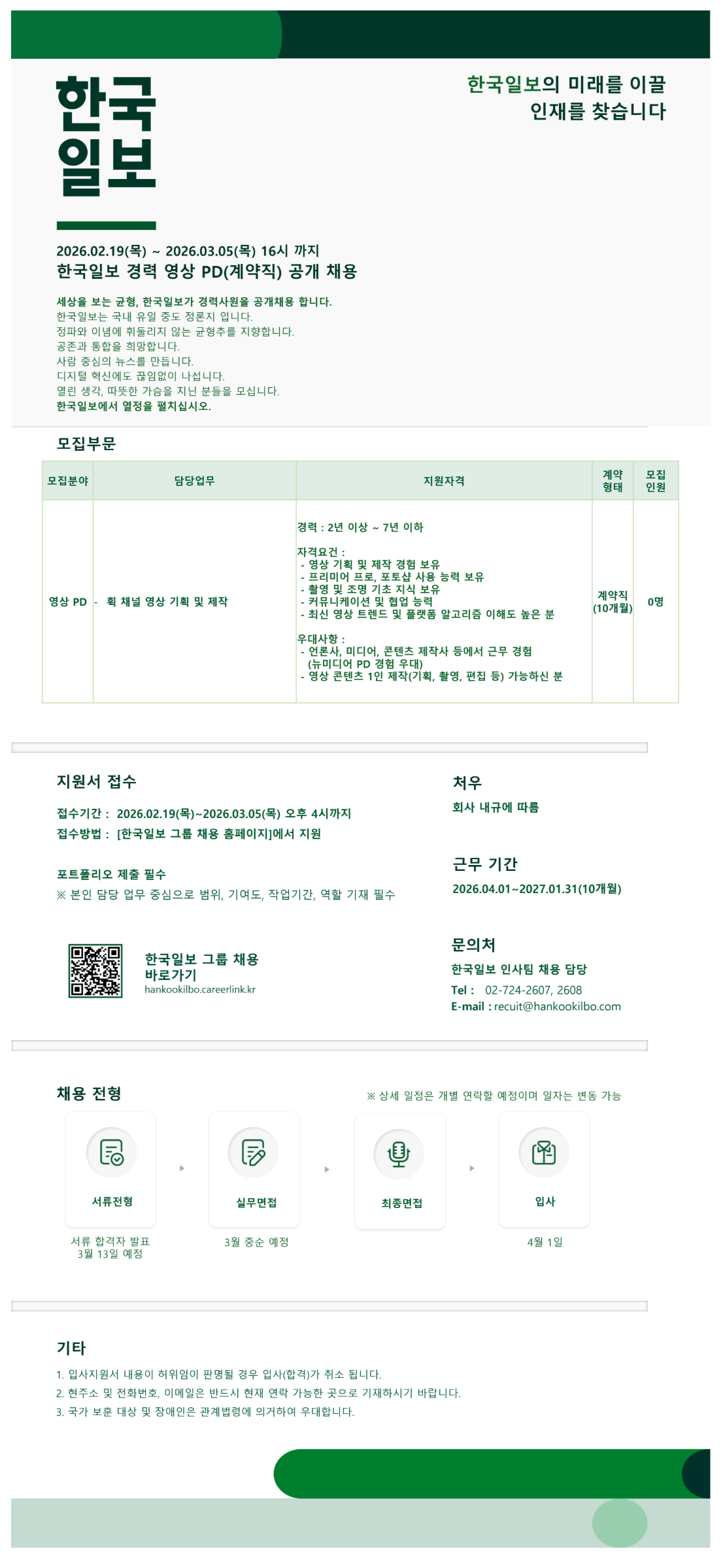 [°æ·Â] Çѱ¹ÀϺ¸ ¿µ»ó PD(°è¾àÁ÷) °ø°³ ä¿ë