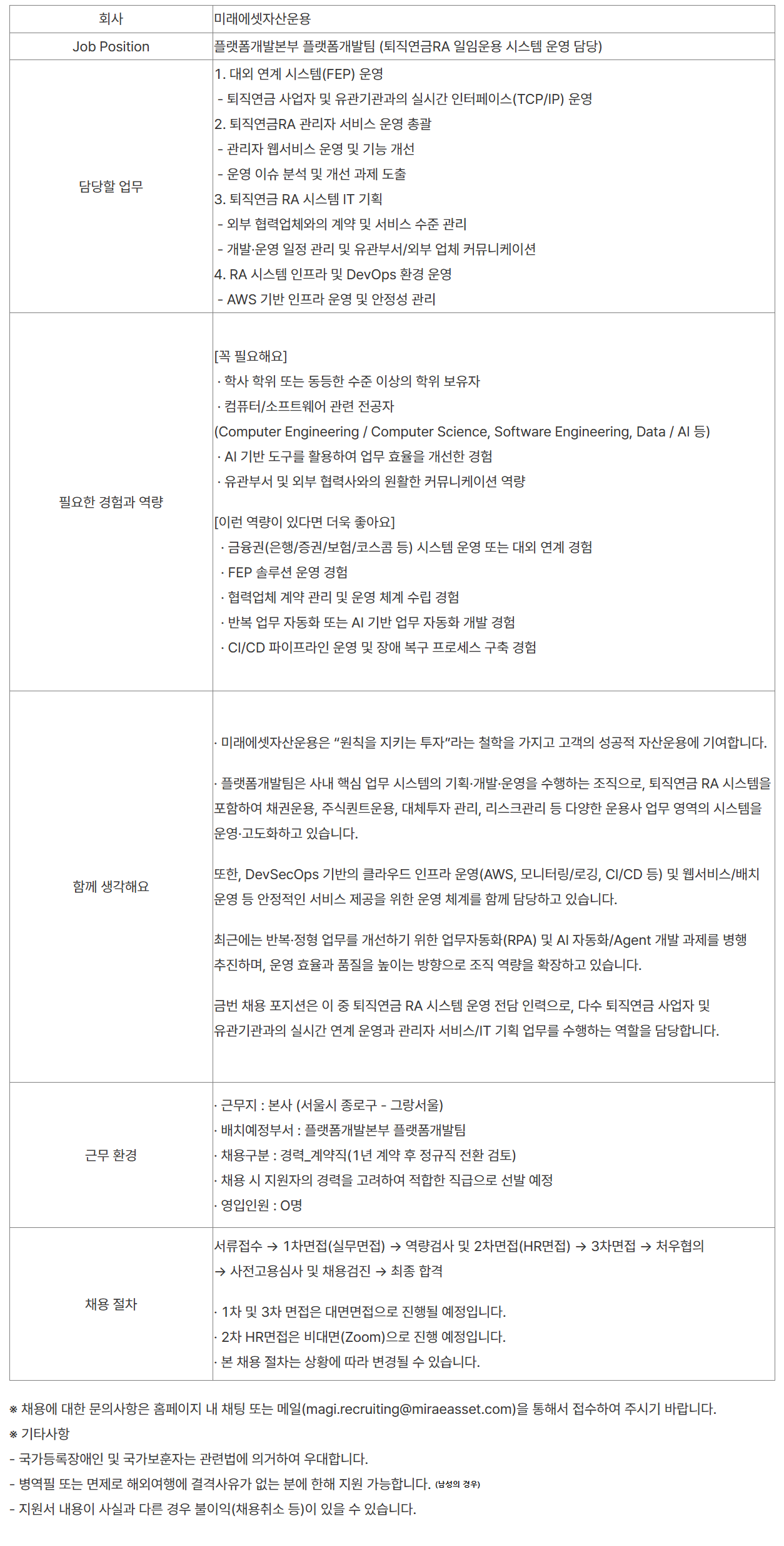 Job Position Ç÷§Æû°³¹ßº»ºÎ Ç÷§Æû°³¹ßÆÀ (ÅðÁ÷¿¬±ÝRA ÀÏÀÓ¿î¿ë ½Ã½ºÅÛ ¿î¿µ ´ã´ç)