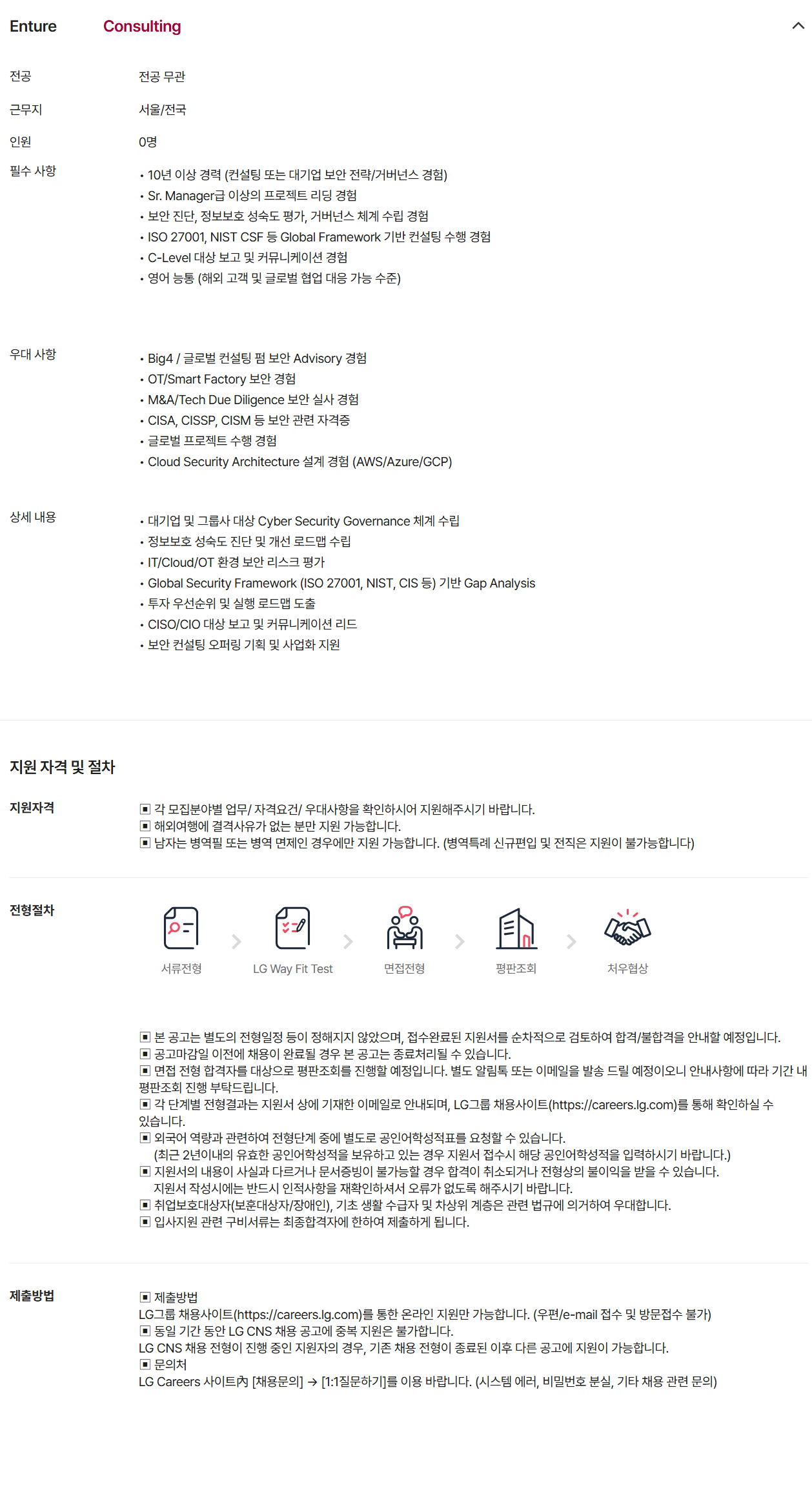 • 10³â ÀÌ»ó °æ·Â (ÄÁ¼³ÆÃ ¶Ç´Â ´ë±â¾÷ º¸¾È Àü·«/°Å¹ö³Í½º °æÇè)