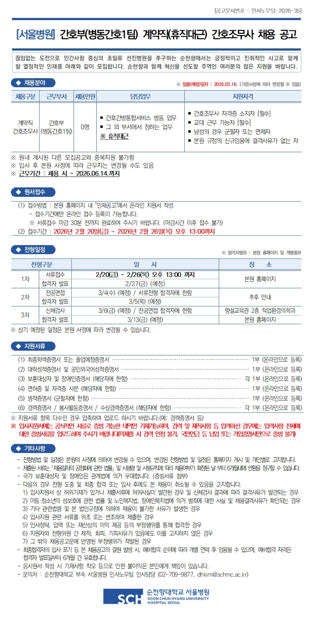 °£È£ºÎ(º´µ¿°£È£1ÆÀ) °è¾àÁ÷(ÈÞÁ÷´ë±Ù) °£È£Á¶¹«»ç ä¿ë °ø°í