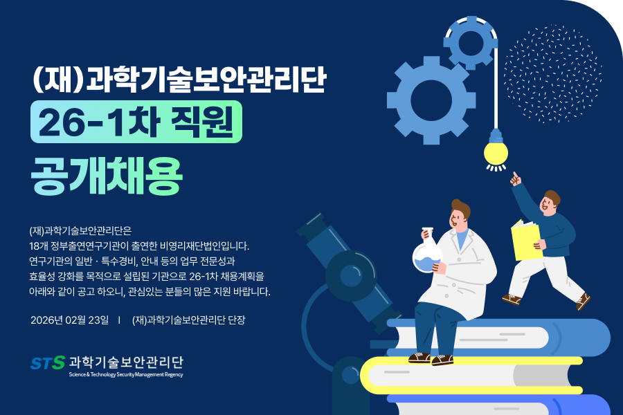 (Àç)°úÇбâ¼úº¸¾È°ü¸®´ÜÀº 18°³ Á¤ºÎÃ⿬¿¬±¸±â°üÀÌ Ã⿬ÇÑ ºñ¿µ¸®Àç´Ü¹ýÀÎÀÔ´Ï´Ù. ¿¬±¸±â°üÀÇ ÀϹݤýƯ¼ö°æºñ, ¾È³» µîÀÇ ¾÷¹« Àü¹®¼º°ú È¿À²¼º °­È­¸¦ ¸ñÀûÀ¸·Î ¼³¸³µÈ ±â°üÀ¸·Î 26-1Â÷ ä¿ë°èȹÀ» ¾Æ·¡¿Í °°ÀÌ °ø°í ÇÏ¿À´Ï, °ü½ÉÀÖ´Â ºÐµéÀÇ ¸¹Àº Áö¿ø ¹Ù¶ø´Ï´Ù.