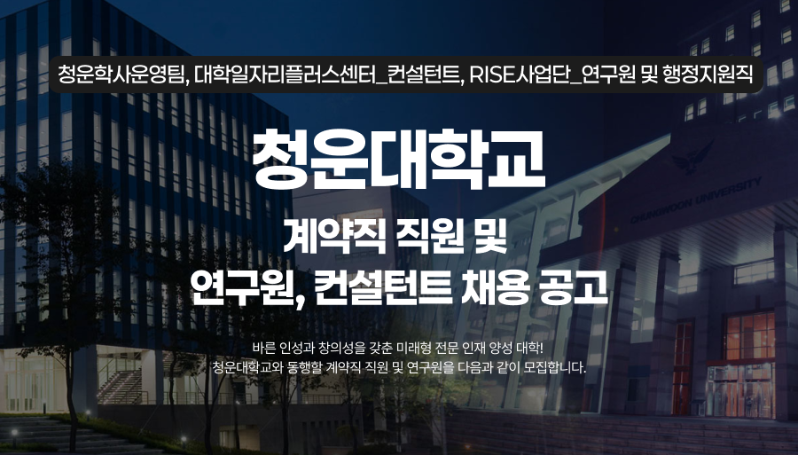 ¹Ù¸¥ Àμº°ú âÀǼºÀ» °®Ãá ¹Ì·¡Çü Àü¹® ÀÎÀç ¾ç¼º ´ëÇÐ! û¿î´ëÇб³¿Í µ¿ÇàÇÒ °è¾àÁ÷ Á÷¿ø ¹× ¿¬±¸¿øÀ» ´ÙÀ½°ú °°ÀÌ ¸ðÁýÇÕ´Ï´Ù.