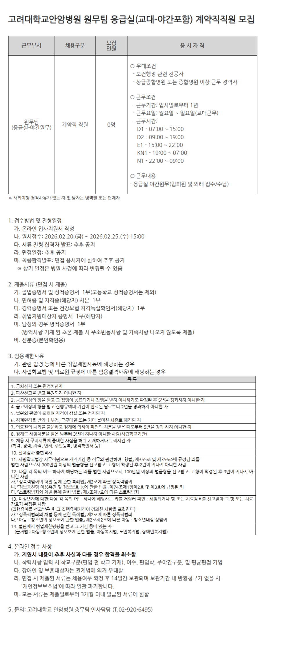 [¾È¾Ïº´¿ø 25-285]¿ø¹«ÆÀ ÀÀ±Þ½Ç(±³´ë±Ù¹«-¾ß°£Æ÷ÇÔ) °è¾àÁ÷ Á÷¿ø ¸ðÁý