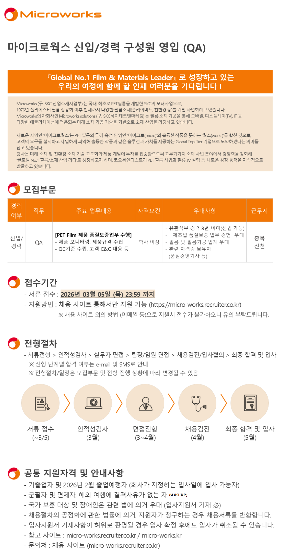 [¸¶ÀÌÅ©·Î¿÷½º] 2026³â QA(ǰÁú) ½ÅÀÔ/°æ·Â ±¸¼º¿ø ¿µÀÔ