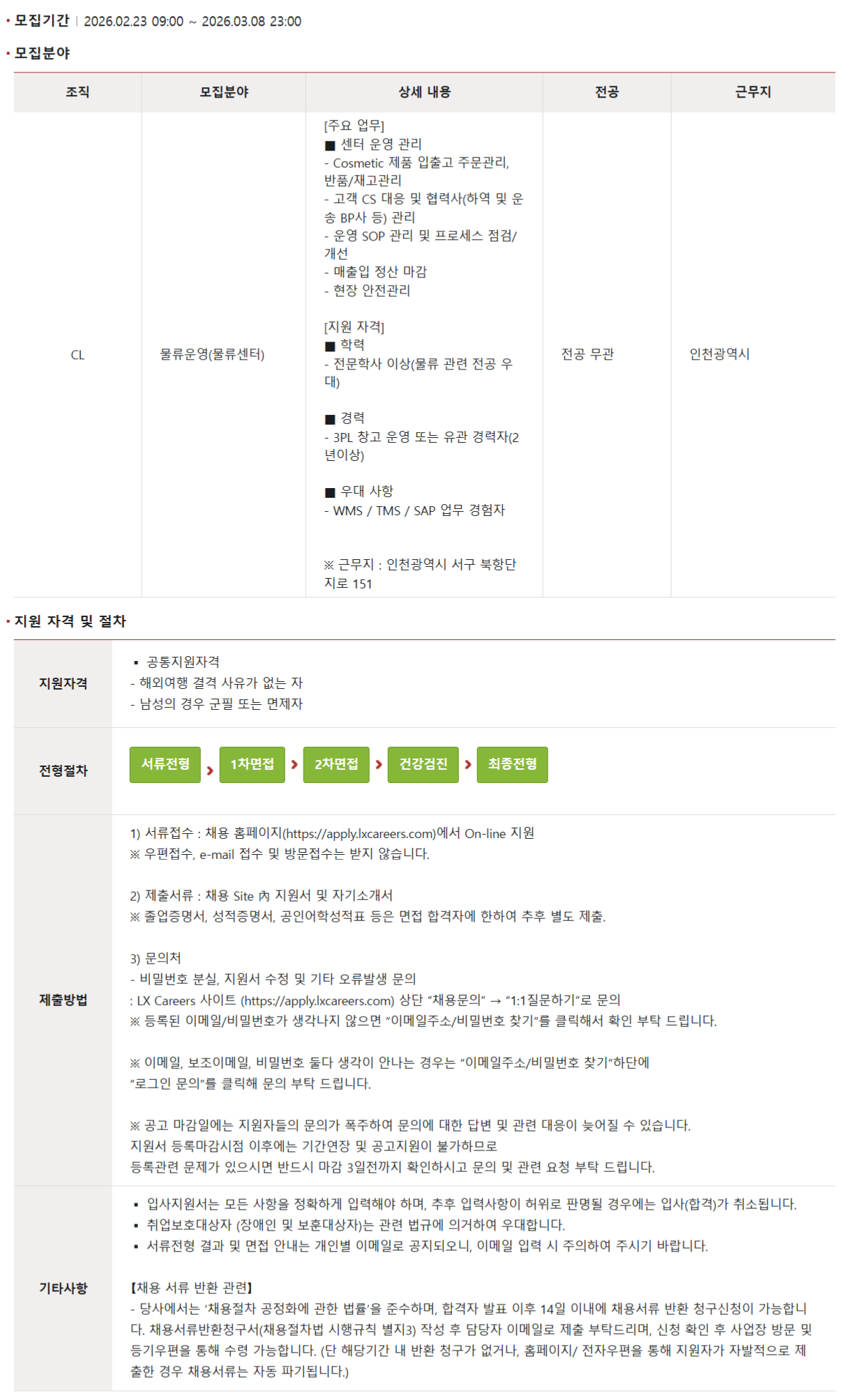 [LXÆÇÅ佺] CL ¹°·ù¼¾ÅÍ ¿î¿µ °æ·Â»ç¿ø ä¿ë (ÀÎõ)