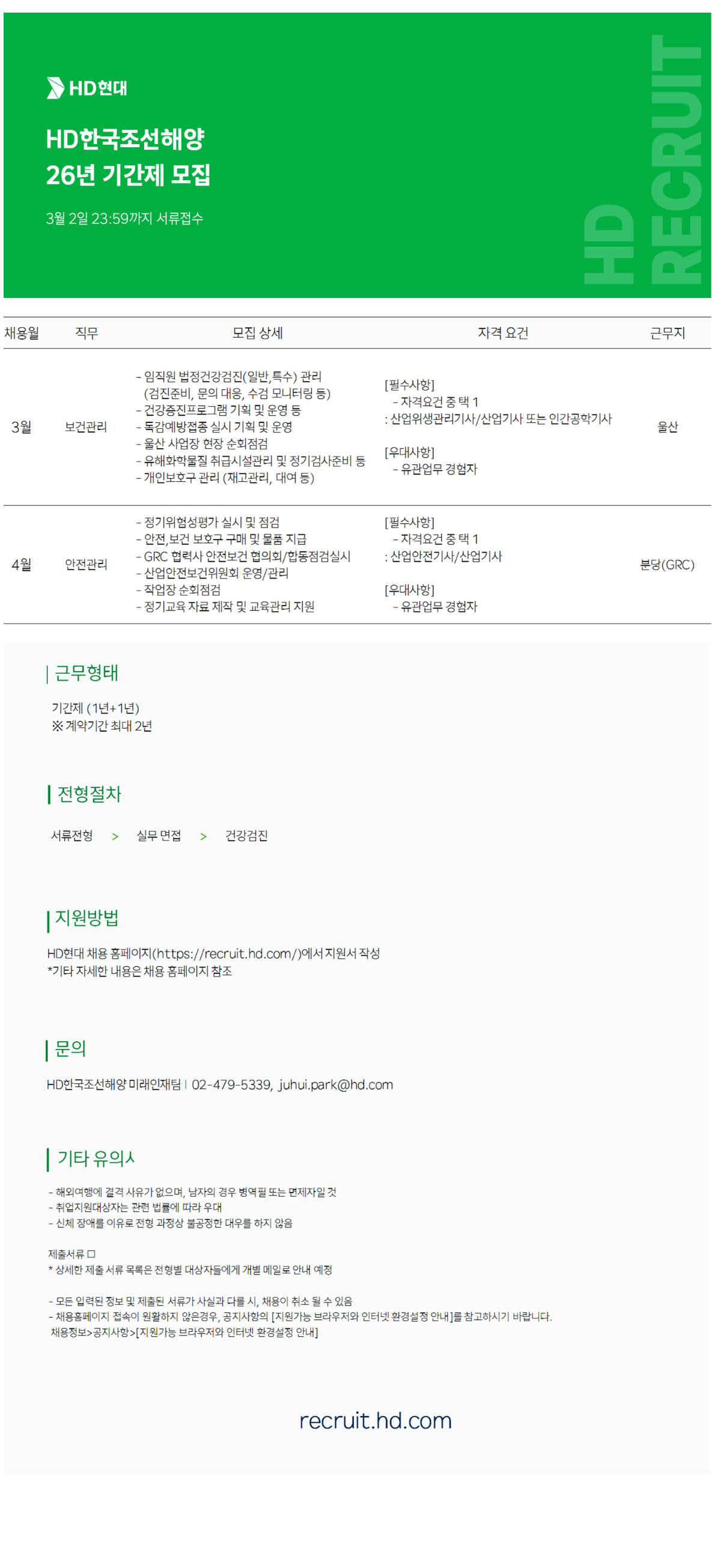 [HDÇѱ¹Á¶¼±Çؾç] ¾ÈÀü/º¸°Ç ±â°£Á¦ ¸ðÁý