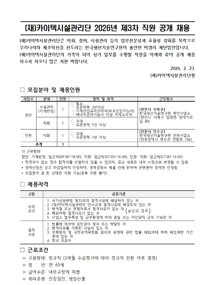 (Àç)Ä«ÀÌÅØ½Ã¼³°ü¸®´Ü 2026³â Á¦3Â÷ Á÷¿ø °ø°³Ã¤¿ë