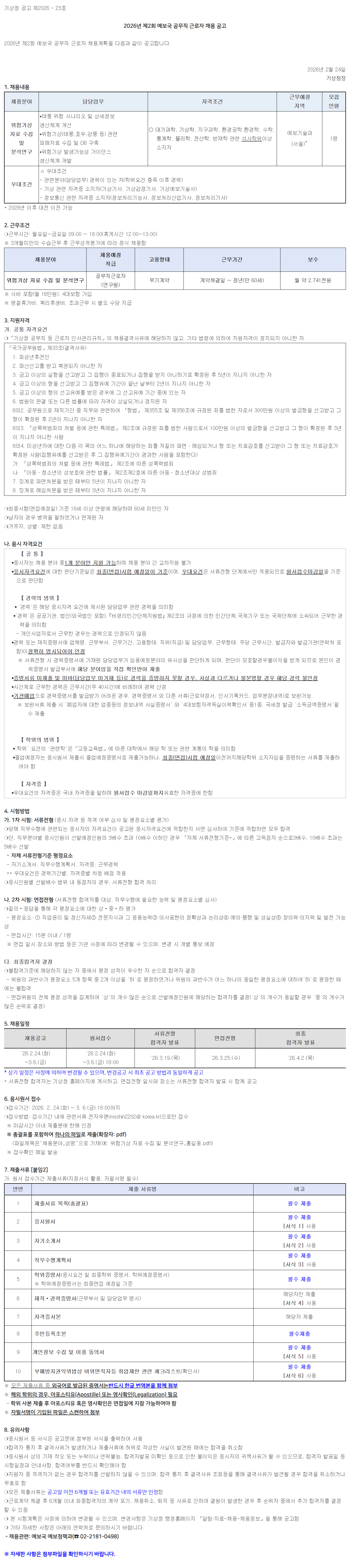 2026³â Á¦2ȸ ¿¹º¸±¹ °ø¹«Á÷ ±Ù·ÎÀÚ Ã¤¿ë°èȹÀ» ´ÙÀ½°ú °°ÀÌ °ø°íÇÕ´Ï´Ù.