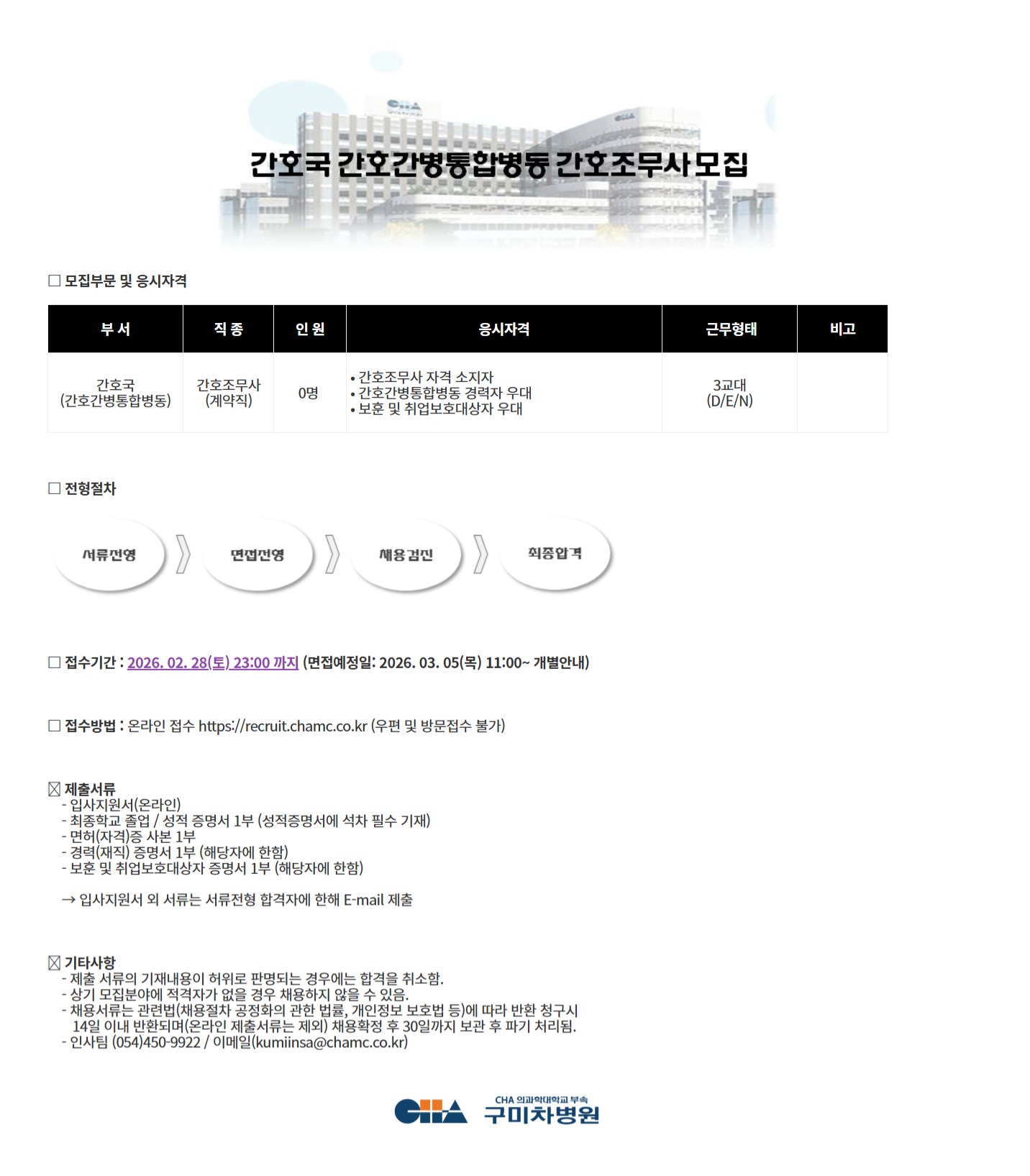 [±¸¹ÌÂ÷º´¿ø] °£È£°£º´ÅëÇÕº´µ¿ °£È£Á¶¹«»ç ¸ðÁý(°è¾àÁ÷)