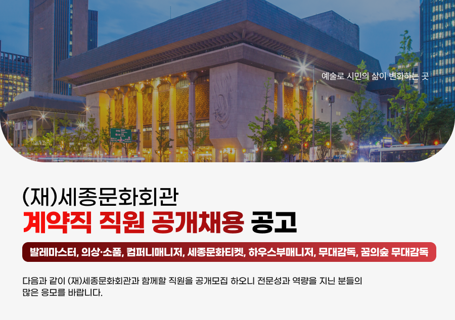 ´ÙÀ½°ú °°ÀÌ (Àç)¼¼Á¾¹®Èȸ°ü°ú ÇÔ²²ÇÒ Á÷¿øÀ» °ø°³¸ðÁý ÇÏ¿À´Ï Àü¹®¼º°ú ¿ª·®À» Áö´Ñ ºÐµéÀÇ ¸¹Àº ÀÀ¸ð¸¦ ¹Ù¶ø´Ï´Ù.