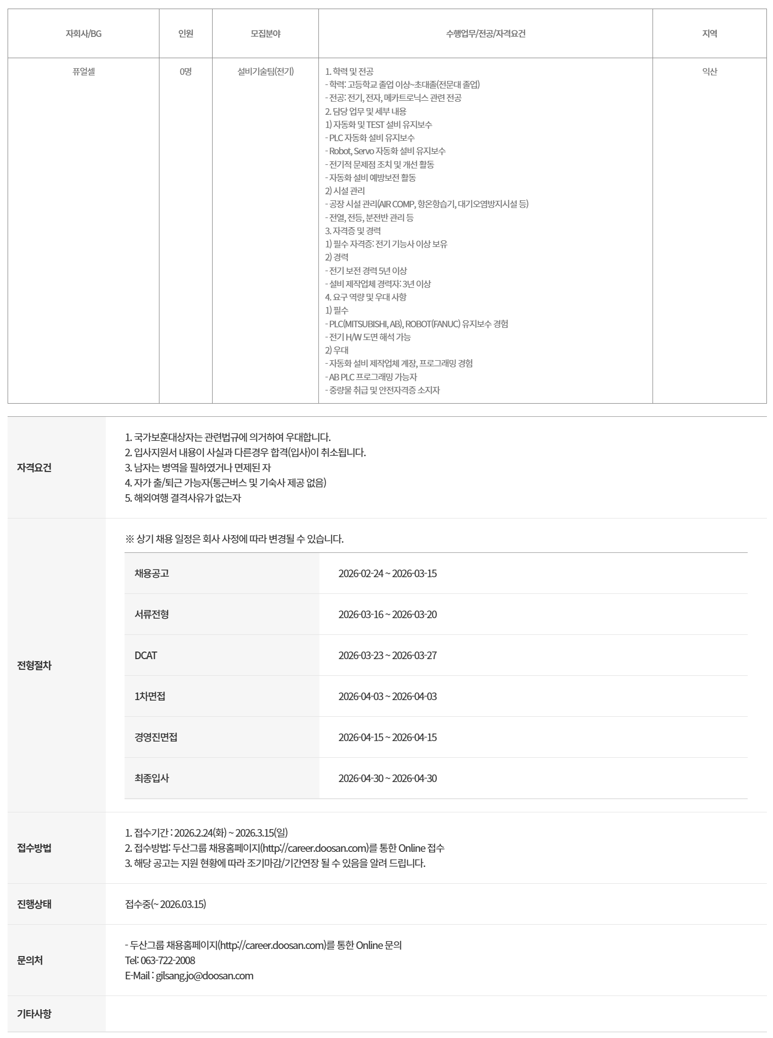 2. Á¢¼ö¹æ¹ý: µÎ»ê±×·ì ä¿ëȨÆäÀÌÁö(http://career.doosan.com)¸¦ ÅëÇÑ Online Á¢¼ö