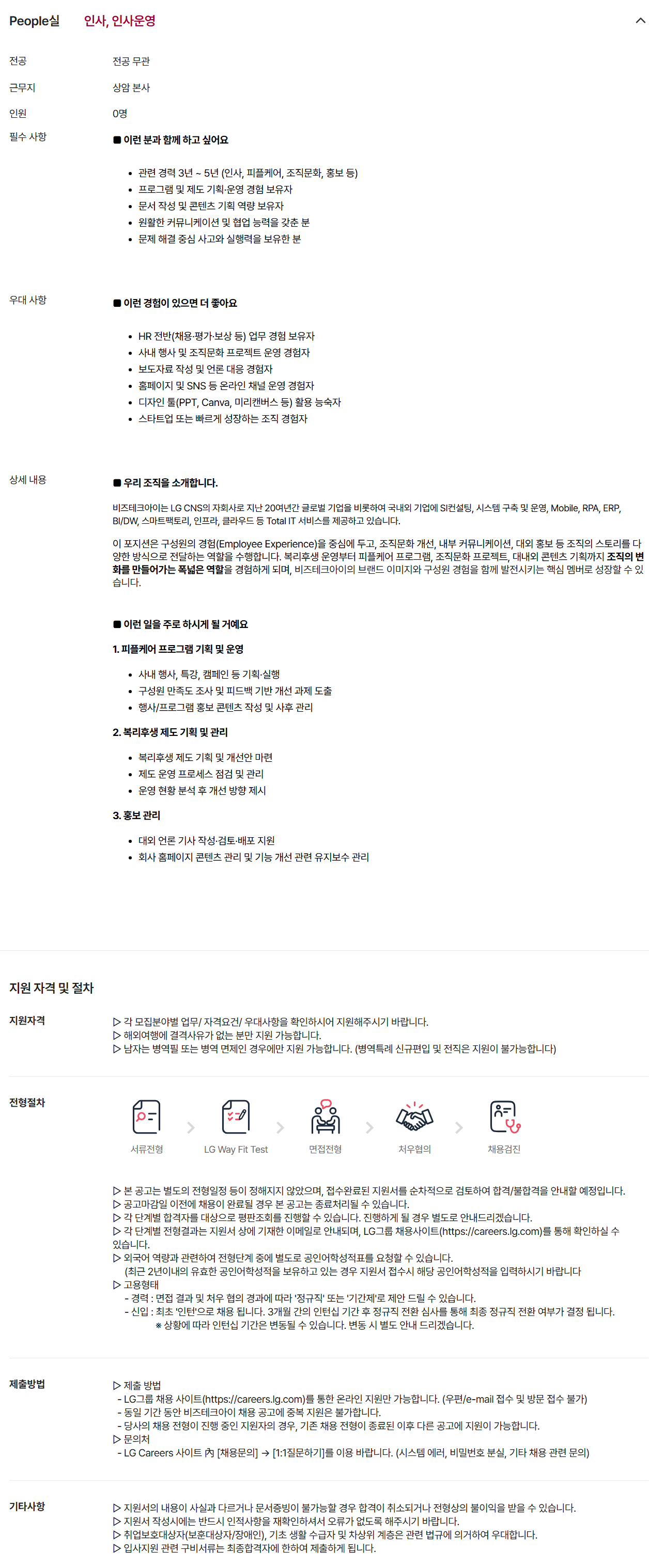 ÀÌ Æ÷Áö¼ÇÀº ±¸¼º¿øÀÇ °æÇè(Employee Experience)À» Á߽ɿ¡ µÎ°í, Á¶Á÷¹®È °³¼±, ³»ºÎ Ä¿¹Â´ÏÄÉÀ̼Ç, ´ë¿Ü È«º¸ µî Á¶Á÷ÀÇ ½ºÅ丮¸¦ ´Ù¾çÇÑ ¹æ½ÄÀ¸·Î Àü´ÞÇÏ´Â ¿ªÇÒÀ» ¼öÇàÇÕ´Ï´Ù. º¹¸®ÈÄ»ý ¿î¿µºÎÅÍ ÇÇÇÃÄɾî ÇÁ·Î±×·¥, Á¶Á÷¹®È ÇÁ·ÎÁ§Æ®, ´ë³»¿Ü ÄÜÅÙÃ÷ ±âȹ±îÁö Á¶Á÷ÀÇ º¯È¸¦ ¸¸µé¾î°¡´Â Æø³ÐÀº ¿ªÇÒÀ» °æÇèÇÏ°Ô µÇ¸ç, ºñÁîÅ×Å©¾ÆÀÌÀÇ ºê·£µå À̹ÌÁö¿Í ±¸¼º¿ø °æÇèÀ» ÇÔ²² ¹ßÀü½ÃŰ´Â ÇÙ½É ¸â¹ö·Î ¼ºÀåÇÒ ¼ö ÀÖ½À´Ï´Ù.