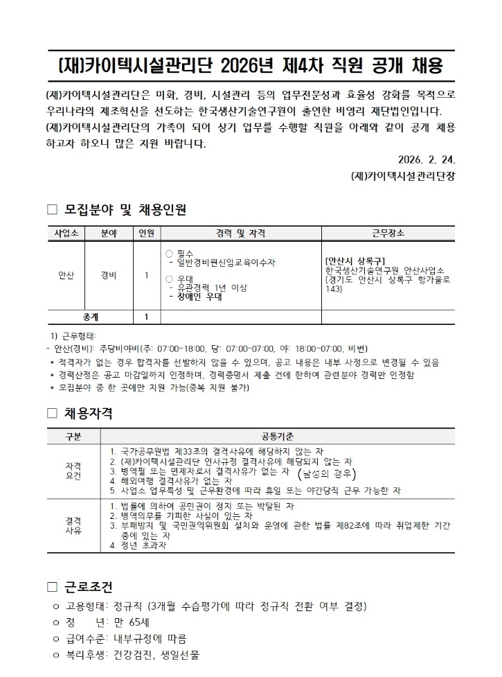 (Àç)Ä«ÀÌÅØ½Ã¼³°ü¸®´Ü 2026³â Á¦4Â÷ Á÷¿ø °ø°³Ã¤¿ë