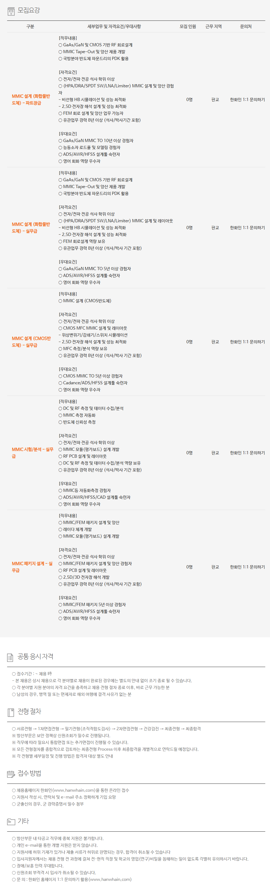 ±¸ºÐ ¼¼ºÎ¾÷¹« ¹× ÀÚ°Ý¿ä°Ç/¿ì´ë»çÇ× ¸ðÁý Àοø ±Ù¹« Áö¿ª ¹®ÀÇó MMIC ¼³°è (È­ÇÕ¹°¹ÝµµÃ¼) - ÆÄÆ®Àå±Þ [Á÷¹«³»¿ë] ¡Û GaAs/GaN ¹× CMOS ±â¹Ý RF ȸ·Î¼³°è ¡Û MMIC Tape-Out ¹× ¾ç»ê Á¦Ç° °³¹ß ¡Û ±¹¹æºÐ¾ß ¹ÝµµÃ¼ ÆÄ¿îµå¸®ÀÇ PDK Ȱ¿ë [ÀÚ°Ý¿ä°Ç] ¡Û ÀüÀÚ/ÀüÆÄ Àü°ø ¼®»ç ÇÐÀ§ ÀÌ»ó ¡Û (HPA/DRA/SPDT SW/LNA/Limiter) MMIC ¼³°è ¹× ¾ç»ê °æÇèÀÚ - ºñ¼±Çü HB ½Ã¹Ä·¹ÀÌ¼Ç ¹× ¼º´É ÃÖÀûÈ­ - 2.5D ÀüÀÚÀå ÇØ¼® ¼³°è ¹× ¼º´É ÃÖÀûÈ­ ¡Û FEM ȸ·Î ¼³°è ¹× ¾ç»ê ¾÷¹« °¡´ÉÀÚ ¡Û À¯°ü¾÷¹« °æ·Â 8³â ÀÌ»ó (¼®»ç/¹Ú»ç±â°£ Æ÷ÇÔ) [¿ì´ë¿ä°Ç] ¡Û GaAs/GaN MMIC TO 10³â ÀÌ»ó °æÇèÀÚ ¡Û ´Éµ¿¼ÒÀÚ ·ÎµåÇ® ¹× ¸ðµ¨¸µ °æÇèÀÚ ¡Û ADS/AWR/HFSS ¼³°èÅø ¼÷·ÃÀÚ ¡Û ¿µ¾î ȸȭ ¿ª·® ¿ì¼öÀÚ 0¸í ÆÇ±³ ÇÑÈ­ÀÎ 1:1 ¹®ÀÇÇϱâ MMIC ¼³°è (È­ÇÕ¹°¹ÝµµÃ¼) - ½Ç¹«±Þ [Á÷¹«³»¿ë] ¡Û GaAs/GaN ¹× CMOS ±â¹Ý RF ȸ·Î¼³°è ¡Û MMIC Tape-Out ¹× ¾ç»ê Á¦Ç° °³¹ß ¡Û ±¹¹æºÐ¾ß ¹ÝµµÃ¼ ÆÄ¿îµå¸®ÀÇ PDK Ȱ¿ë [ÀÚ°Ý¿ä°Ç] ¡Û ÀüÀÚ/ÀüÆÄ Àü°ø ¼®»ç ÇÐÀ§ ÀÌ»ó ¡Û (HPA/DRA/SPDT SW/LNA/Limiter) MMIC ¼³°è ¹× ·¹À̾ƿô - ºñ¼±Çü HB ½Ã¹Ä·¹ÀÌ¼Ç ¹× ¼º´É ÃÖÀûÈ­ - 2.5D ÀüÀÚÀå ÇØ¼® ¼³°è ¹× ¼º´É ÃÖÀûÈ­ ¡Û FEM ȸ·Î¼³°è ¿ª·® º¸À¯ ¡Û À¯°ü¾÷¹« °æ·Â 8³â ÀÌ»ó (¼®»ç/¹Ú»ç ±â°£ Æ÷ÇÔ) [¿ì´ë¿ä°Ç] ¡Û GaAs/GaN MMIC TO 5³â ÀÌ»ó °æÇèÀÚ ¡Û ADS/AWR/HFSS ¼³°èÅø ¼÷·ÃÀÚ ¡Û ¿µ¾î ȸȭ ¿ª·® ¿ì¼öÀÚ 0¸í ÆÇ±³ ÇÑÈ­ÀÎ 1:1 ¹®ÀÇÇϱâ MMIC ¼³°è (CMOS¹ÝµµÃ¼) - ½Ç¹«±Þ [Á÷¹«³»¿ë] ¡Û MMIC ¼³°è (CMOS¹ÝµµÃ¼) [ÀÚ°Ý¿ä°Ç] ¡Û ÀüÀÚ/ÀüÆÄ Àü°ø ¼®»ç ÇÐÀ§ ÀÌ»ó ¡Û CMOS MFC MMIC ¼³°è ¹× ·¹À̾ƿô - À§»óº¯À§±â/°¨¼â±â/½ºÀ§Ä¡ ½Ã¹Ä·¹ÀÌ¼Ç - 2.5D ÀüÀÚÀå ÇØ¼® ¼³°è ¹× ¼º´É ÃÖÀûÈ­ ¡Û MFC ÃøÁ¤/ºÐ¼® ¿ª·® º¸À¯ ¡Û À¯°ü¾÷¹« °æ·Â 8³â ÀÌ»ó (¼®»ç/¹Ú»ç ±â°£ Æ÷ÇÔ) [¿ì´ë¿ä°Ç] ¡Û CMOS MMIC TO 5³â ÀÌ»ó °æÇèÀÚ ¡Û Cadance/ADS/HFSS ¼³°èÅø ¼÷·ÃÀÚ ¡Û ¿µ¾î ȸȭ ¿ª·® ¿ì¼öÀÚ 0¸í ÆÇ±³ ÇÑÈ­ÀÎ 1:1 ¹®ÀÇÇϱâ MMIC ½ÃÇè/ºÐ¼® - ½Ç¹«±Þ [Á÷¹«³»¿ë] ¡Û DC ¹× RF ÃøÁ¤ ¹× µ¥ÀÌÅÍ ¼öÁý/ºÐ¼® ¡Û MMIC ÃøÁ¤ ÀÚµ¿È­ ¡Û ¹ÝµµÃ¼ ½Å·Ú¼º ÃøÁ¤ [ÀÚ°Ý¿ä°Ç] ¡Û ÀüÀÚ/ÀüÆÄ Àü°ø ¼®»ç ÇÐÀ§ ÀÌ»ó ¡Û MMIC ¸ðµâ(Æò°¡º¸µå) ¼³°è °³¹ß ¡Û RF PCB ¼³°è ¹× ·¹À̾ƿô ¡Û DC ¹× RF ÃøÁ¤ ¹× µ¥ÀÌÅÍ ¼öÁý/ºÐ¼® ¿ª·® º¸À¯ ¡Û À¯°ü¾÷¹« °æ·Â 8³â ÀÌ»ó (¼®»ç/¹Ú»ç ±â°£ Æ÷ÇÔ) [¿ì´ë¿ä°Ç] ¡Û MMICµî ÀÚµ¿È­ÃøÁ¤ °æÇèÀÚ ¡Û ADS/AWR/HFSS/CAD ¼³°èÅø ¼÷·ÃÀÚ ¡Û ¿µ¾î ȸȭ ¿ª·® ¿ì¼öÀÚ 0¸í ÆÇ±³ ÇÑÈ­ÀÎ 1:1 ¹®ÀÇÇϱâ MMIC ÆÐŰÁö ¼³°è - ½Ç¹«±Þ [Á÷¹«³»¿ë] ¡Û MMIC/FEM ÆÐŰÁö ¼³°è ¹× ¾ç»ê ¡Û ·¹À̴٠ü°è °³¹ß ¡Û MMIC ¸ðµâ(Æò°¡º¸µå) ¼³°è °³¹ß [ÀÚ°Ý¿ä°Ç] ¡Û ÀüÀÚ/ÀüÆÄ Àü°ø ¼®»ç ÇÐÀ§ ÀÌ»ó ¡Û MMIC/FEM ÆÐŰÁö ¼³°è ¹× ¾ç»ê °æÇèÀÚ ¡Û RF PCB ¼³°è ¹× ·¹À̾ƿô ¡Û 2.5D/3D ÀüÀÚÀå ÇØ¼® °³¹ß ¡Û À¯°ü¾÷¹« °æ·Â 8³â ÀÌ»ó (¼®»ç/¹Ú»ç ±â°£ Æ÷ÇÔ) [¿ì´ë¿ä°Ç] ¡Û MMIC/FEM ÆÐŰÁö 5³â ÀÌ»ó °æÇèÀÚ ¡Û ADS/AWR/HFSS ¼³°èÅø ¼÷·ÃÀÚ ¡Û ¿µ¾î ȸȭ ¿ª·® ¿ì¼öÀÚ 0¸í ÆÇ±³ ÇÑÈ­ÀÎ 1:1 ¹®ÀÇÇϱâ