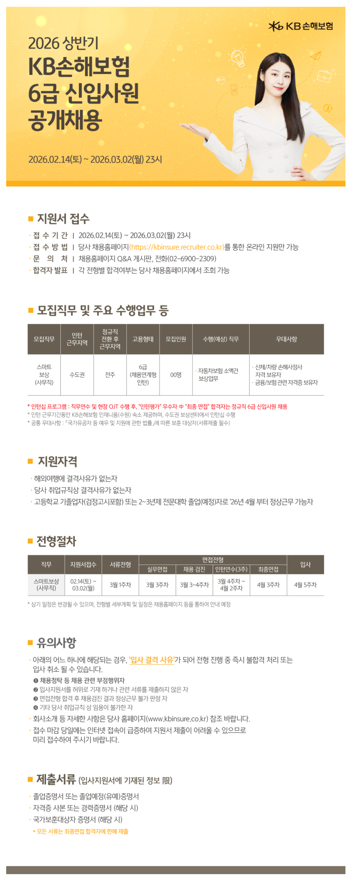 [KB¼ÕÇØº¸Çè] 2026³â »ó¹Ý±â 6±Þ ½ÅÀÔ»ç¿ø °ø°³Ã¤¿ë