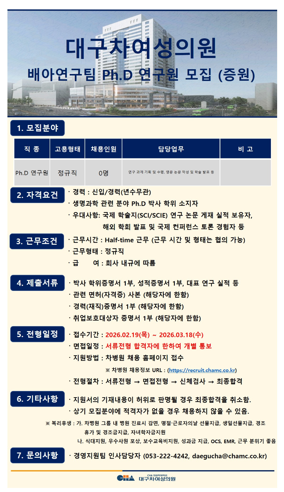 [Â÷¿©¼ºÀÇÇבּ¸¼Ò ´ë±¸] ´ë±¸Â÷¿©¼ºÀÇ¿ø ¹è¾Æ¿¬±¸ÆÀ Ph.D¿¬±¸¿ø ¸ðÁý (Áõ¿ø)