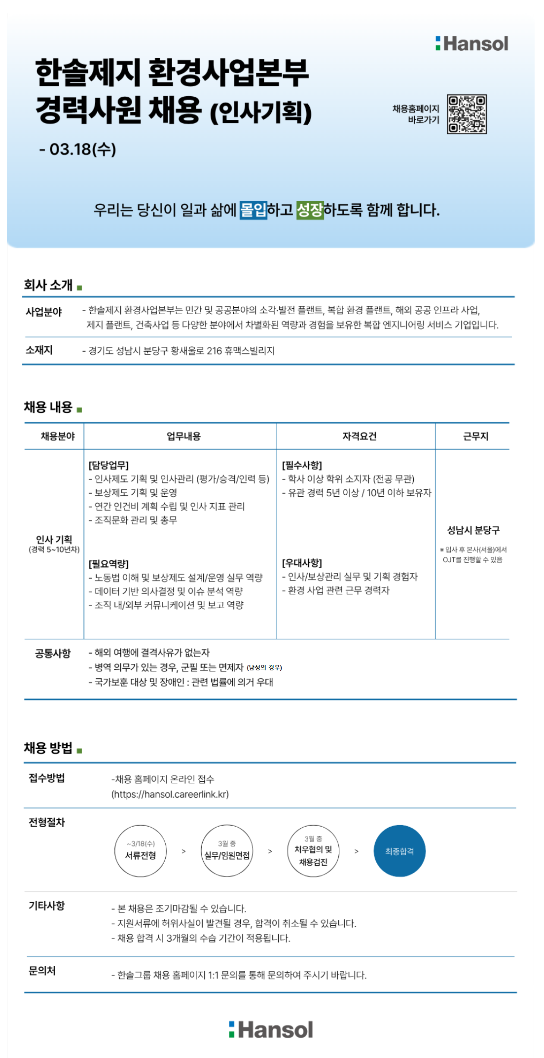 [ÇѼÖÁ¦Áö] ȯ°æ»ç¾÷º»ºÎ °æ·Â»ç¿ø ä¿ë (Àλç±âȹ)
