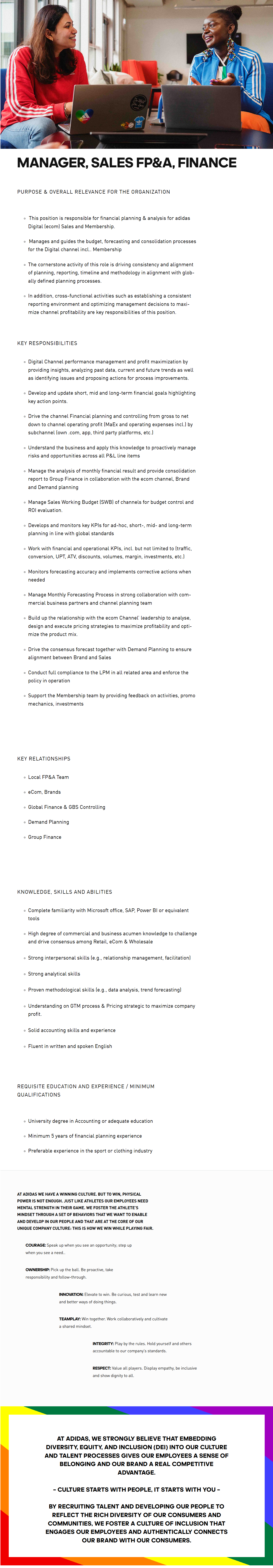 This position is responsible for financial planning & analysis for adidas Digital (ecom) Sales and Membership.