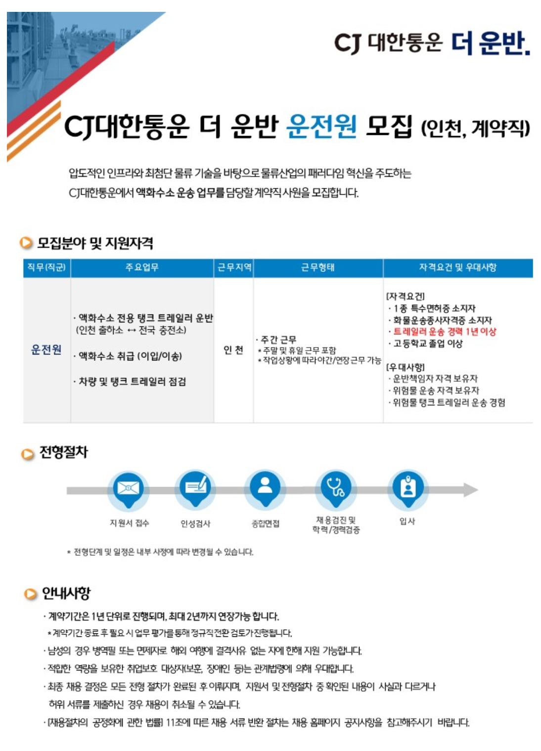 CJ´ëÇÑÅë¿î ´õ ¿î¹Ý ¾×ȼö¼Ò ¿îÀü¿ø ¸ðÁý (ÀÎõ, °è¾àÁ÷)